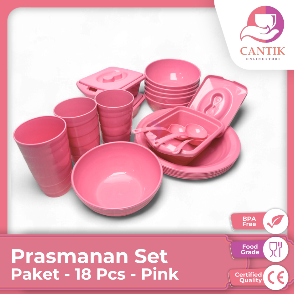 Prasmanan set isi 18 pcs (6pcs Piring+6 Pcs Mangkok+3 Pcs Basi Mini(500ml) +3 Pcs Gelas Ulir) Free Centong Wadah Tempat