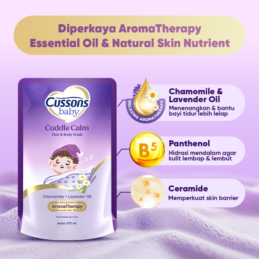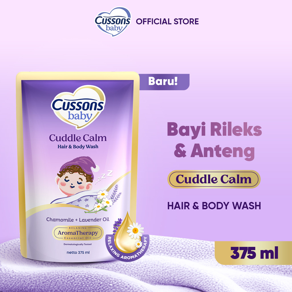 Cussons Baby Cuddle Calm Hair & Body Wash 375ml – Chamomile & Lavender Oil, Sabun Bayi 2in1 Bantu Bayi Rileks & Anteng