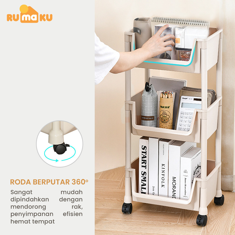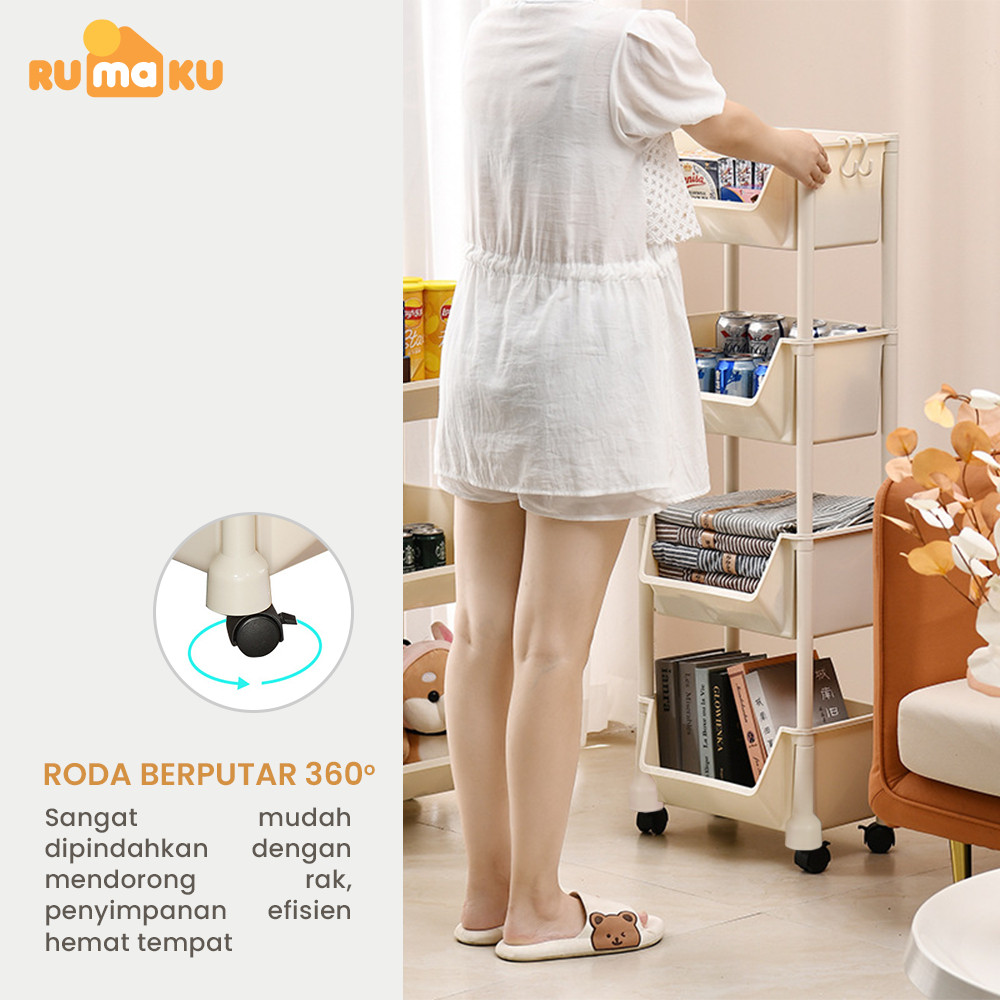 Rumaku Rak Dapur Serbaguna Rak Troli Rak Kamar Mandi Rak Susun Plastik dengan Roda