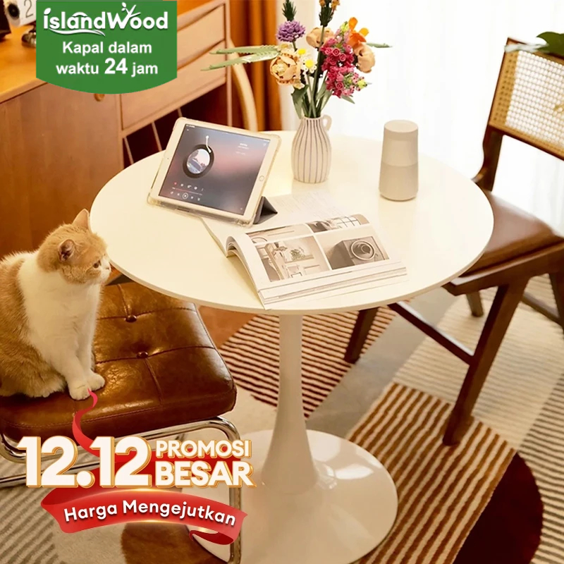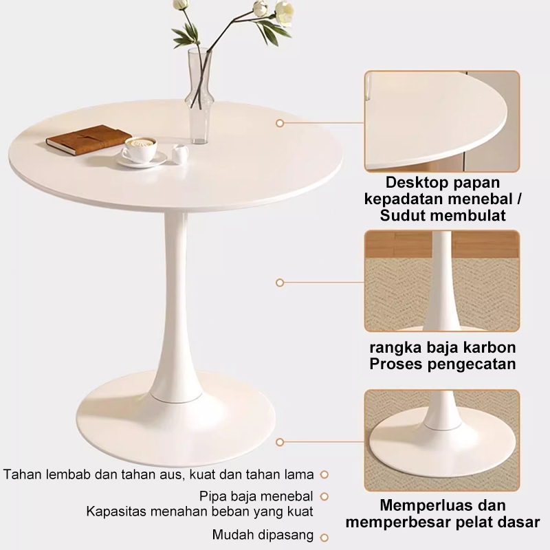 Meja Cafe Minimalis Meja Makan Bulat Putih Meja tamu Meja Teras Meja Kopi Meja Tulip Putih 80cm