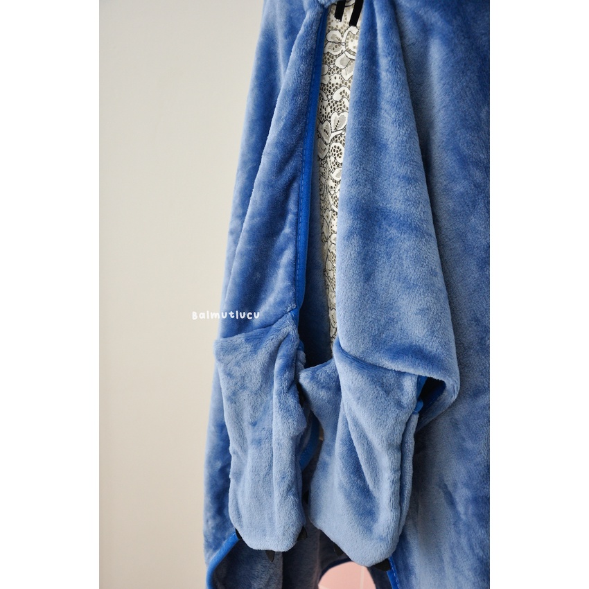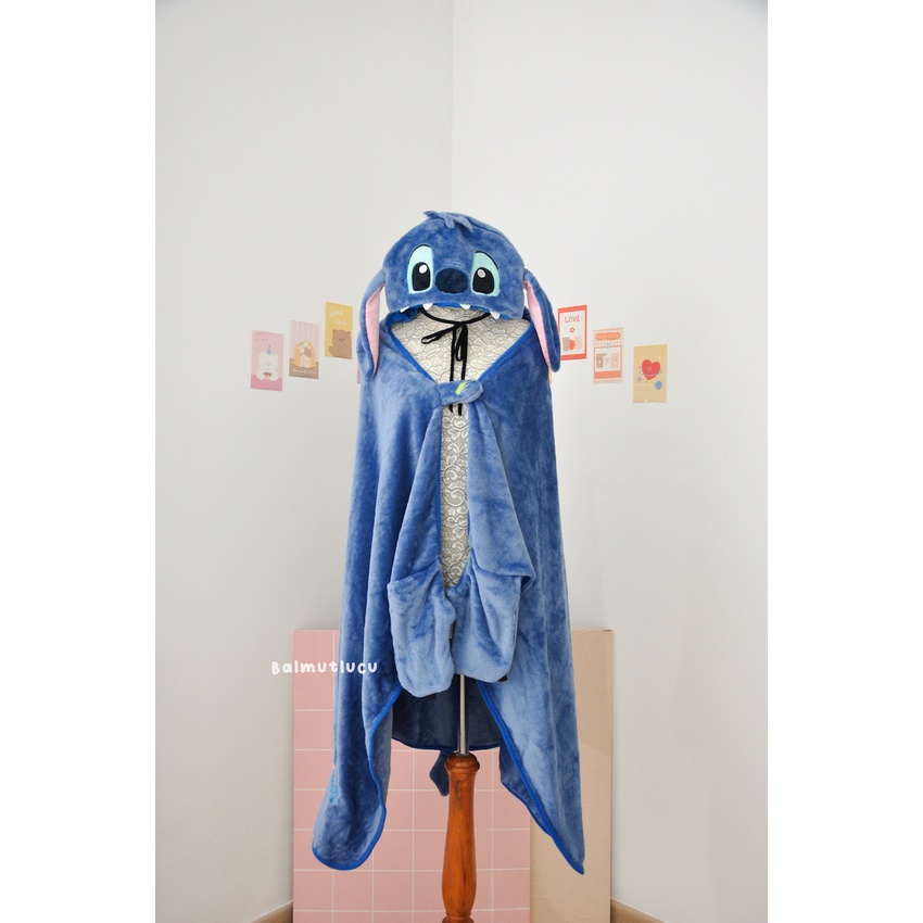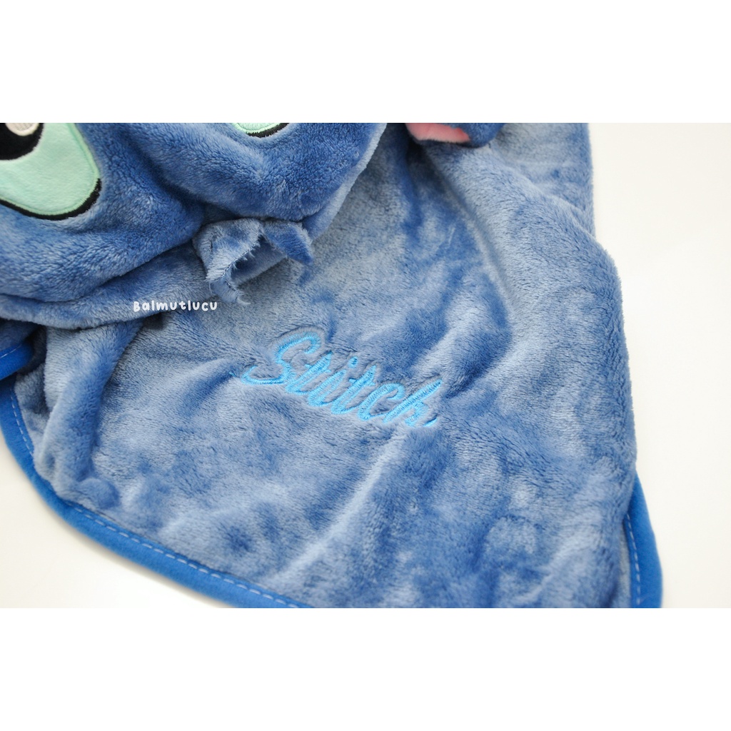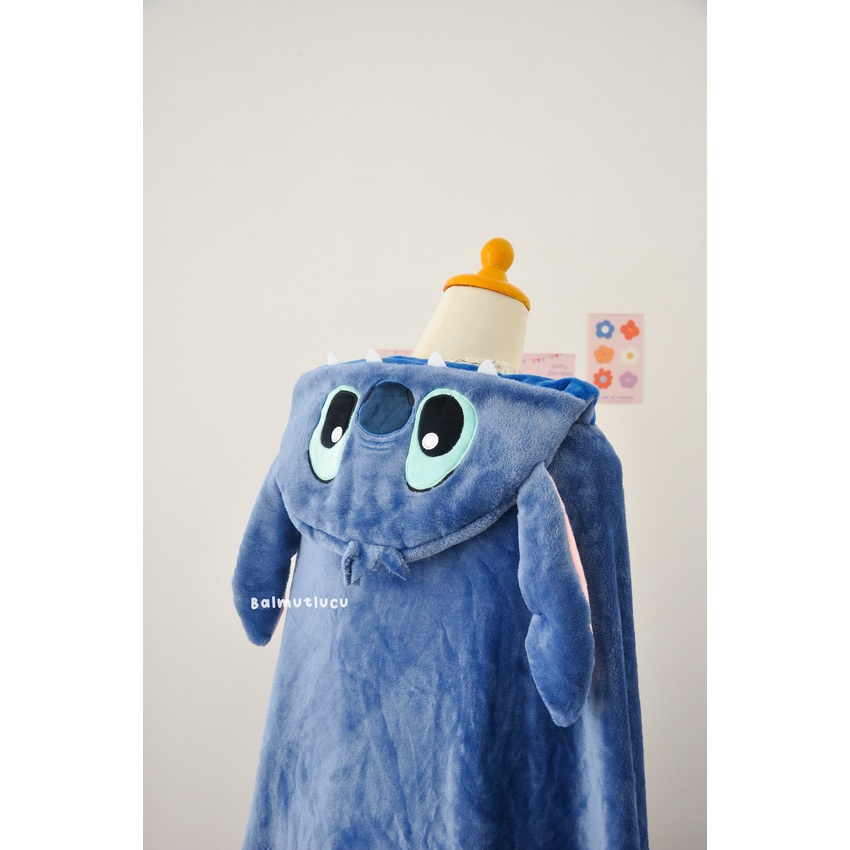 BALMUTLUCU | Selimut Hoodie Karakter Stitch Ada Sarung Tangan | Jubah Selimut Anak Dewasa Lucu