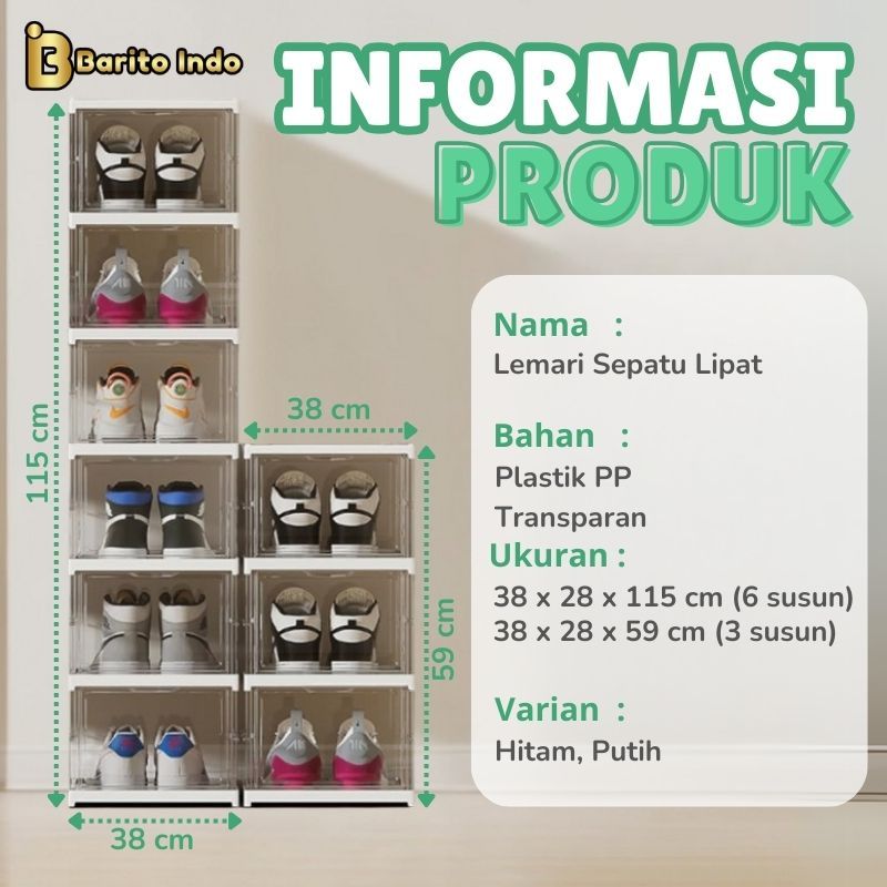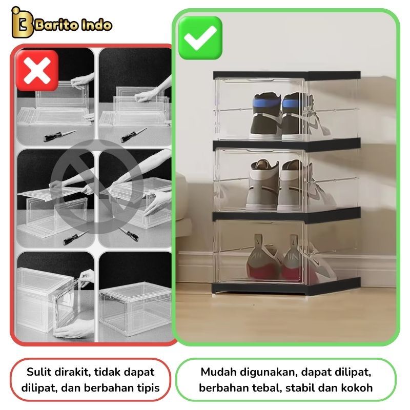 BARITOINDO Lemari Box Rak Susun Sepatu Lipat Tebal Transparan 3 & 6 Susun Serbaguna - C0103B/C0106B