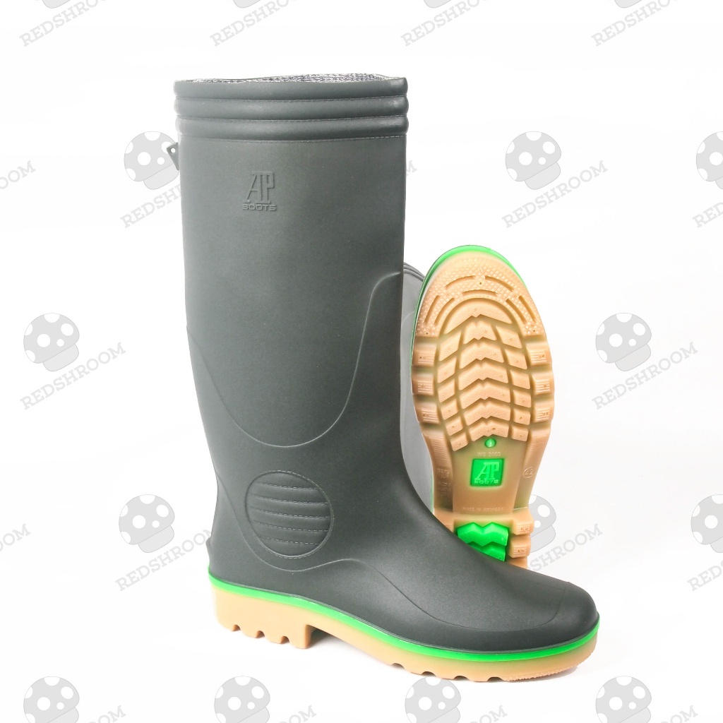 Sepatu Boots Tinggi AP 2003 AP Boots Hijau Tua Karet Lokal Anti Air & Slip Tricolor Perkebunan