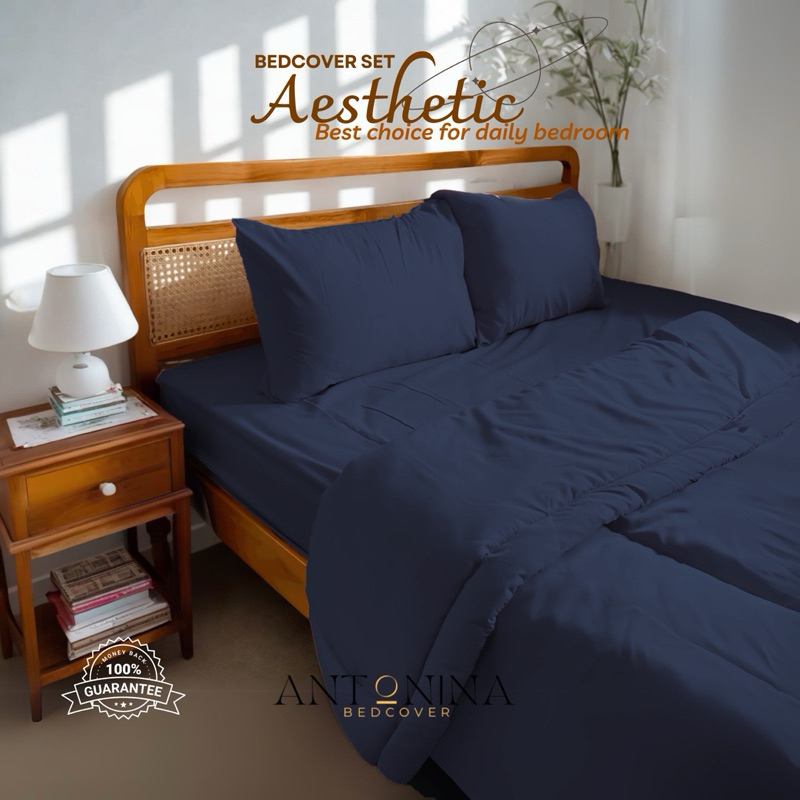 Bedcover Set Polos Katun Lokal Aesthetic – Sprei Hitam Abu Muda | Selimut Tebal & Lembut | Premium elegan