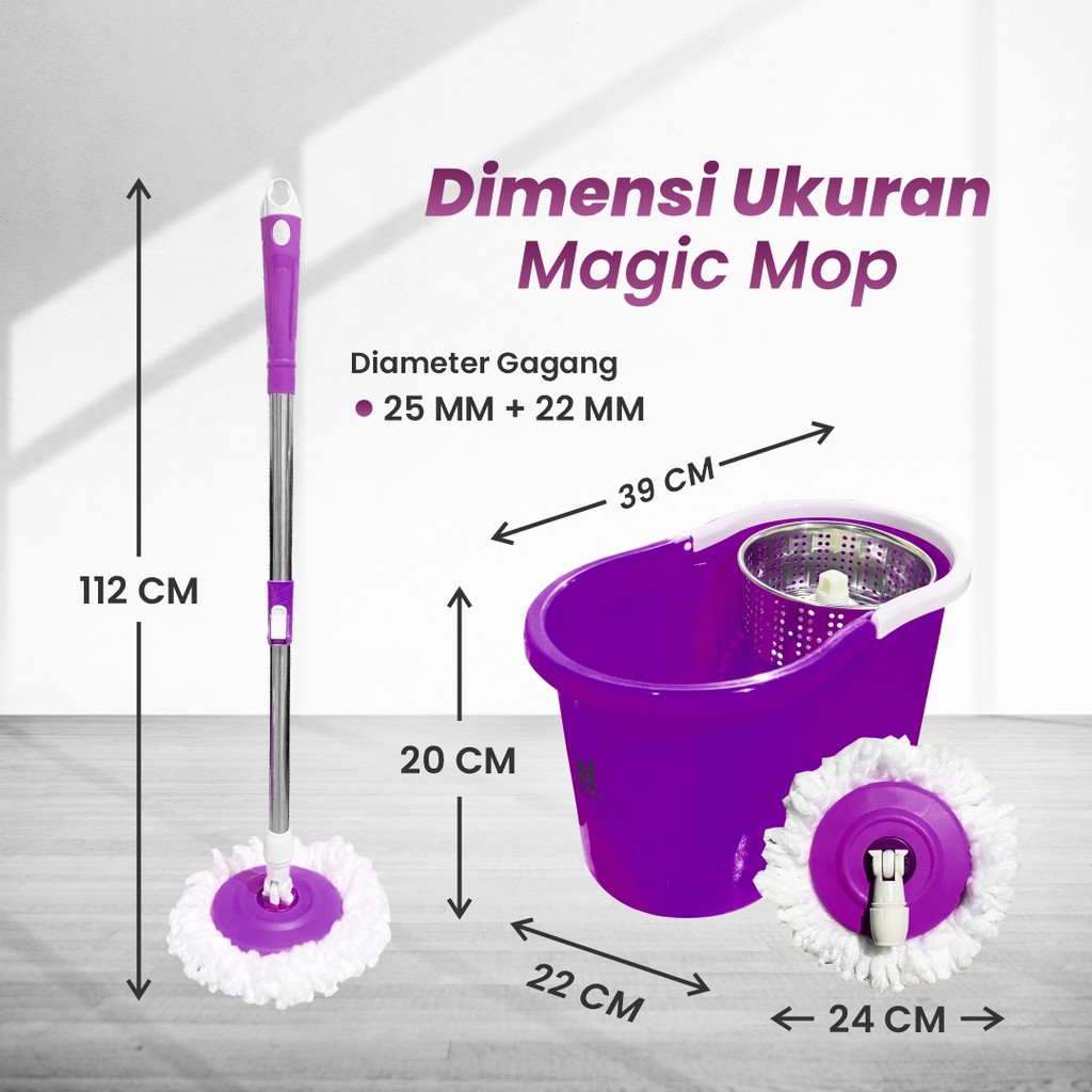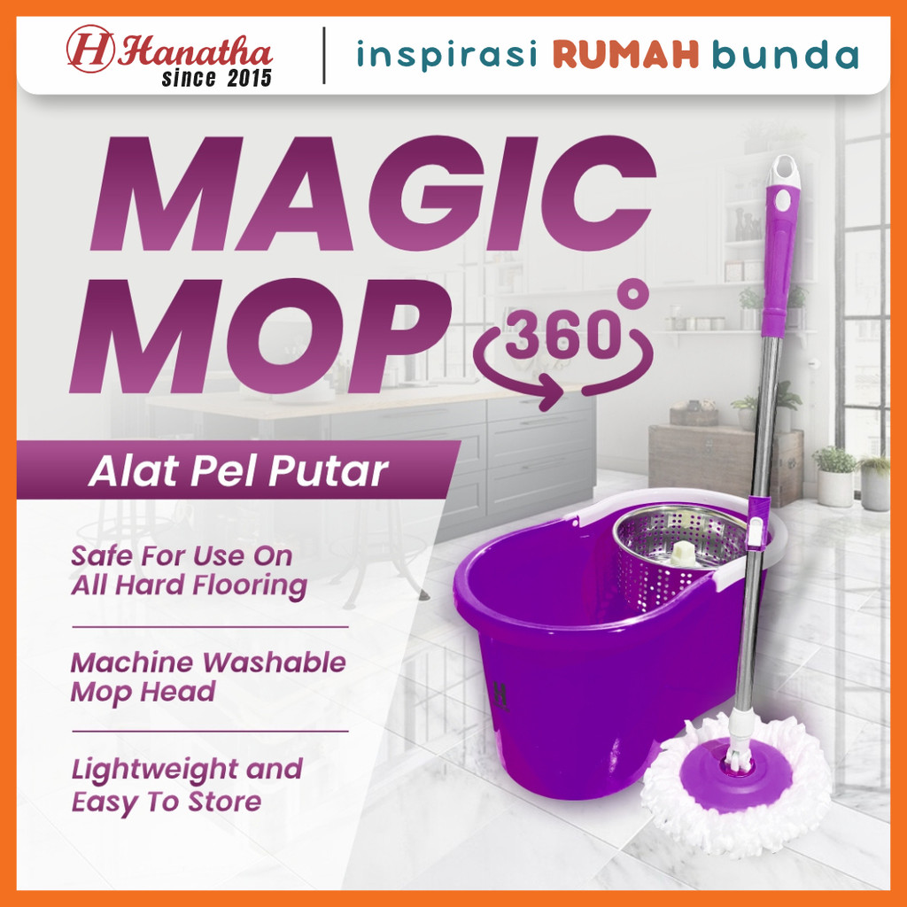 HANASTAR Spin Mop Alat Pel Lantai Pembersih Lantai Bahan Kain Microfiber Otomatis Putar Praktis Magic Mop dengan Ember Bulat Premium + BOX