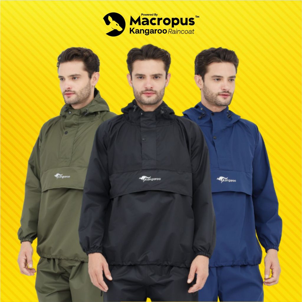 KANGAROO RAINCOAT Jas Hujan Kangguru Anti Bocor Jas Hujan Tebal Saku Kangguru Pria Wanita D3W4SA Anti Air Bahan Taslan Import