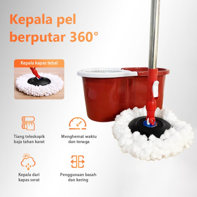 LAsen Alat Pel Lantai Mop Stainless Mop Spin Mop Dengan Rol Praktis Putar Hand Pressure Rotary 360°