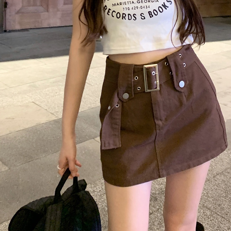 YURUMA Rok Mini Denim Pinggang Tinggi Korea Celana Pendek Jeans A-Line Skort untuk Rok Wanita dengan Sabuk
