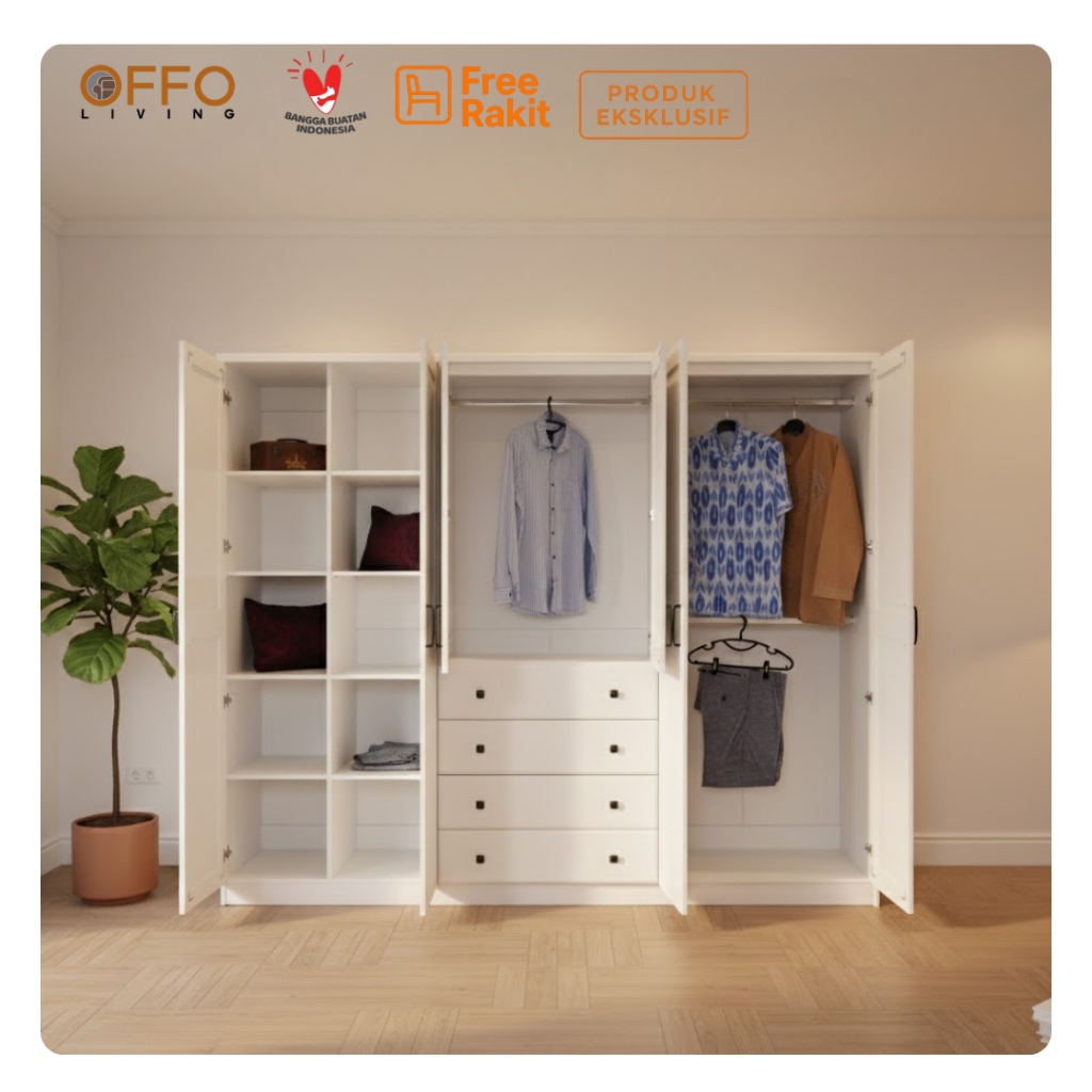 Offo Living - Lemari Pakaian Lemari Baju Putih - Lavender 7