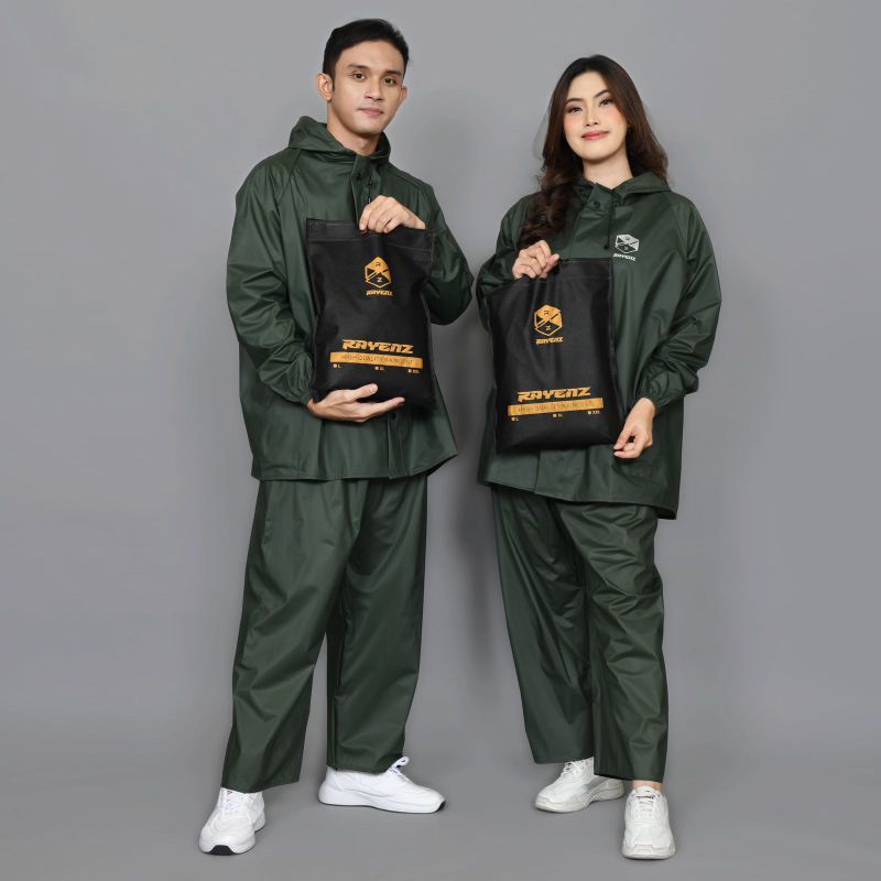 Jas Hujan Raincoat Mantel setelan baju celana wanita pria D3W4SA bahan tebal pvc premium anti rembes&anti air lentur by RAYENZ