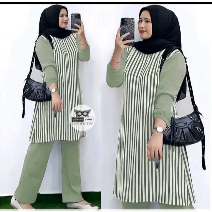 RAISA SET BAJU + CELANA SETELAN SALUR KATUN CELANA PANJANG ONESET WANITA TERBARU KEKINIAN VIRALL