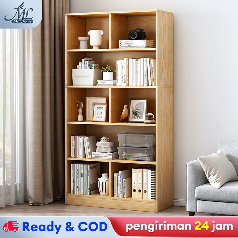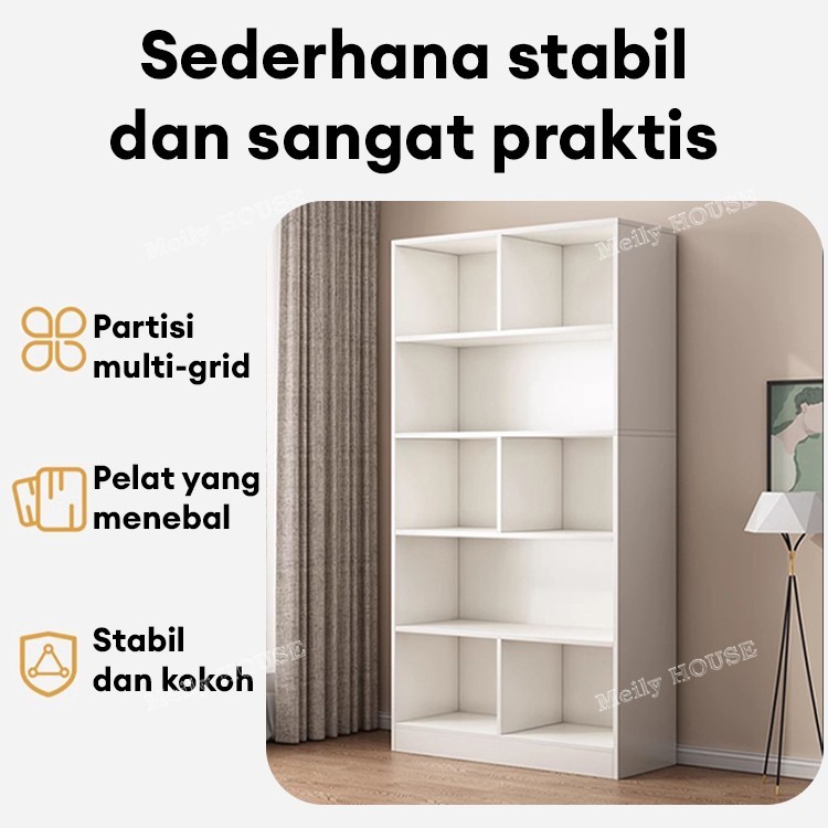 Lemari Buku Minimalis 180CM Lemari Buku Susun Rak Buku Kayu Lemari Serbaguna Lemari Buku Aesthetic
