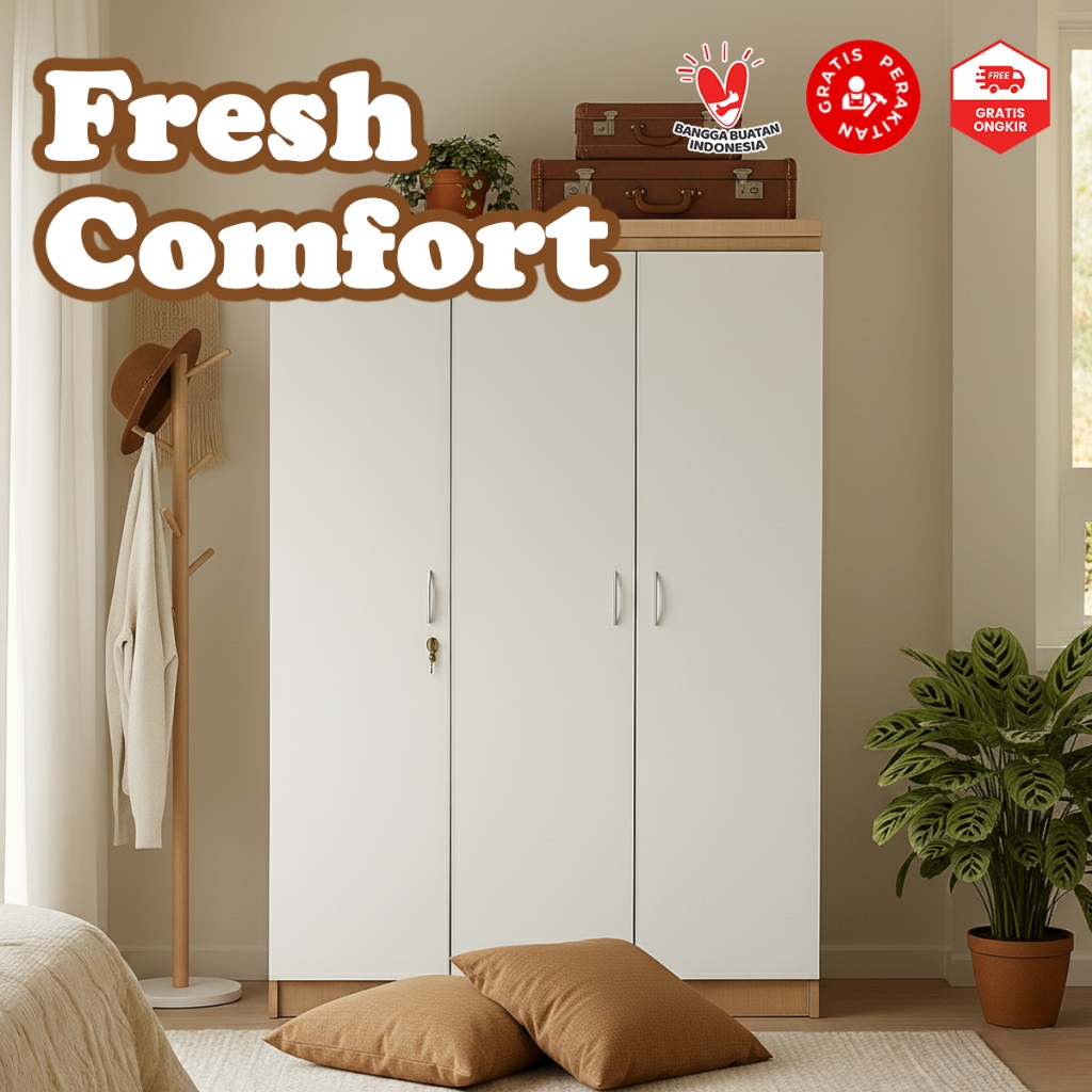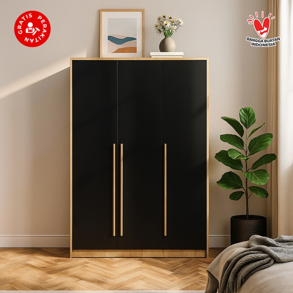 Casaloma Furniture Lemari pakaian 3 Pintu Minimalis Murah Japandi Elegan