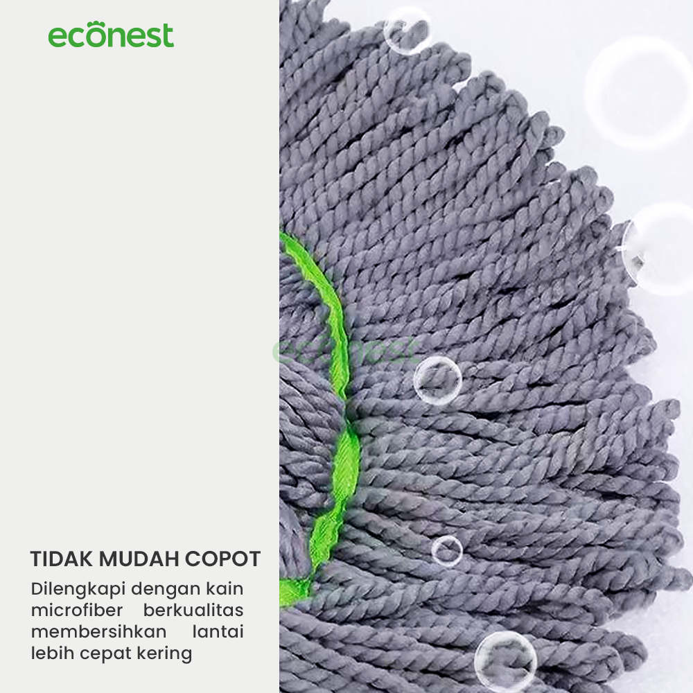 Econest Alat Pel Lantai Twist Mop Kain Pel Microfiber Tarik Peras Otomatis Gagang Stainless Premium