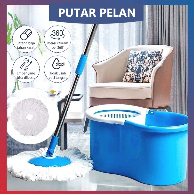 LAsen Alat Pel Lantai Mop Stainless Mop Spin Mop Dengan Rol Praktis Putar Hand Pressure Rotary 360°