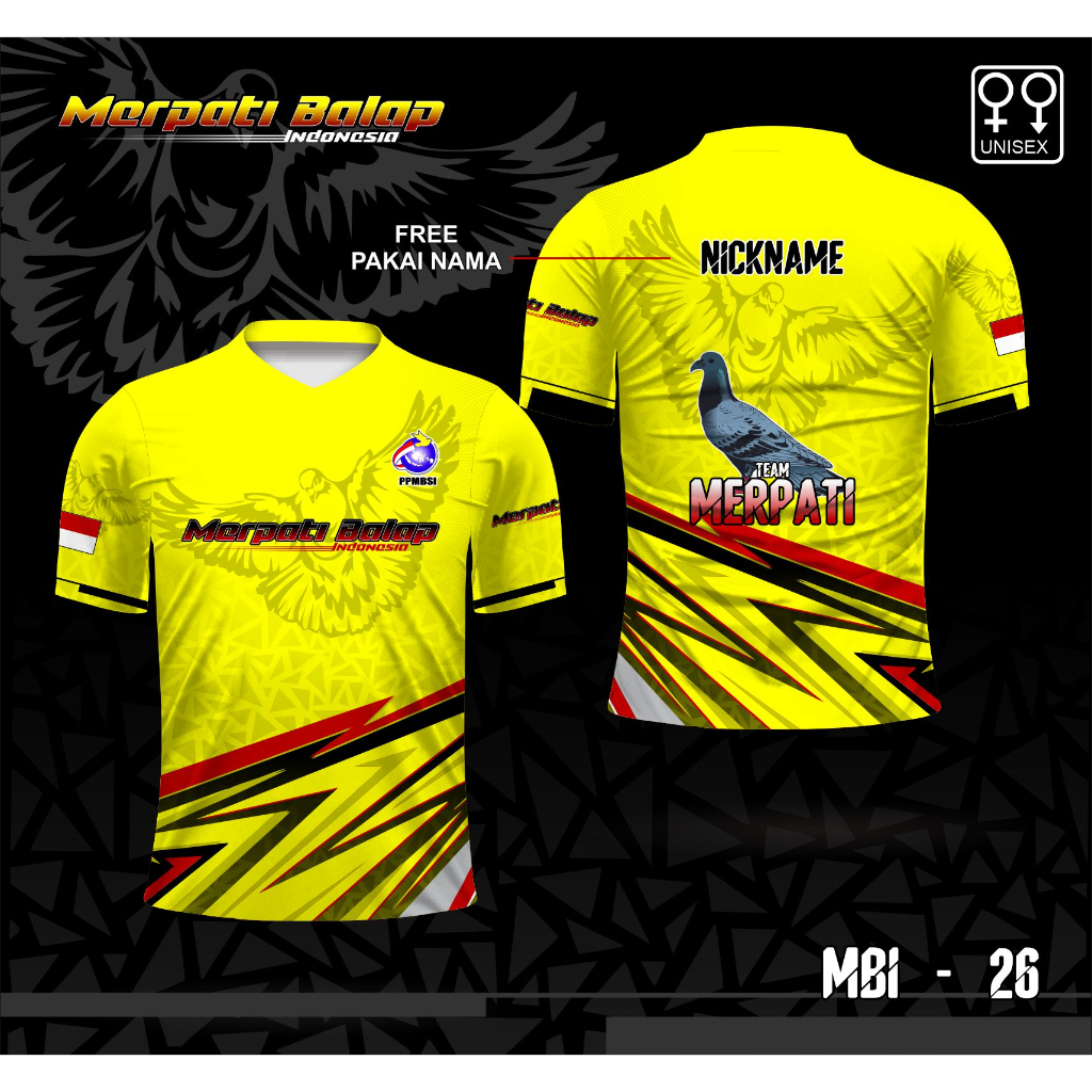Baju merpati balap kolong kaos jersey dara tinggi kuning
