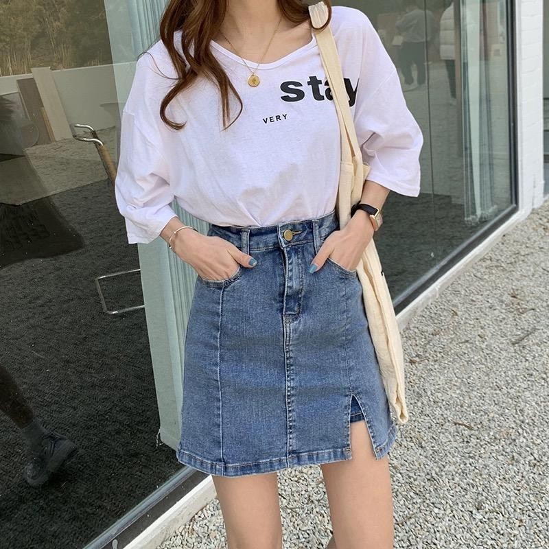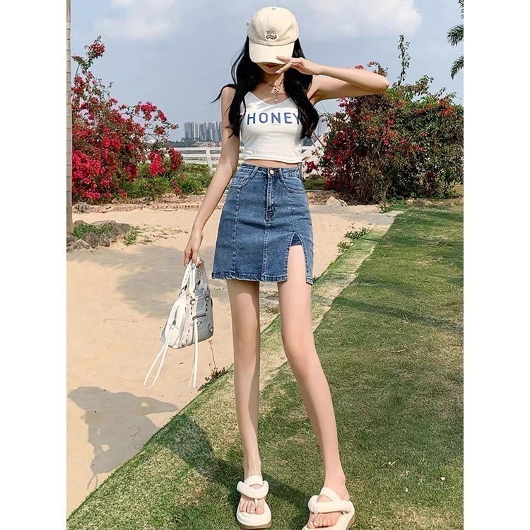 K18 Skort Denim Rok Jeans Wanita Rok Pendek Highwaist