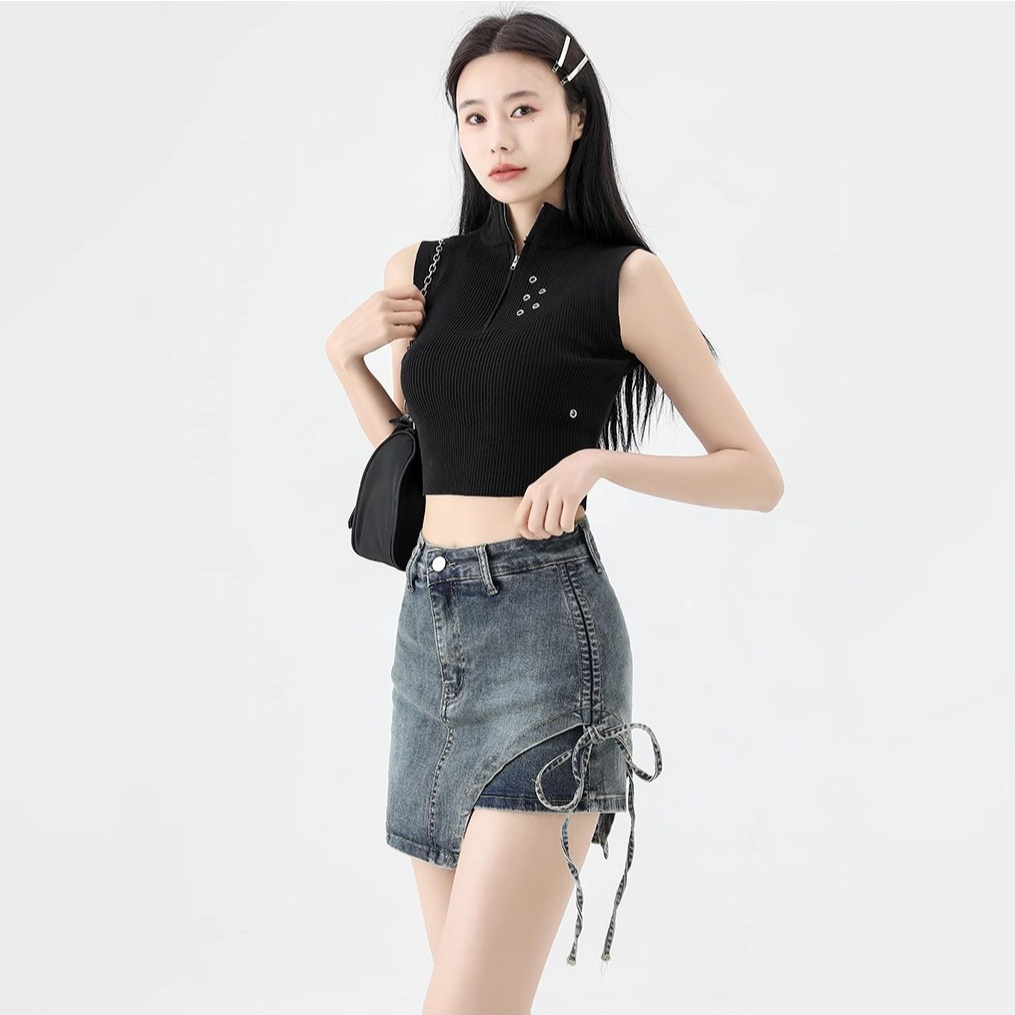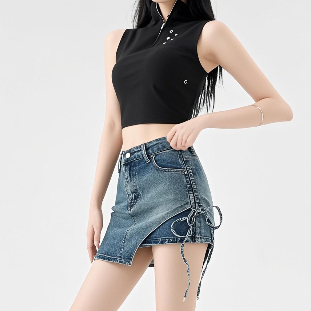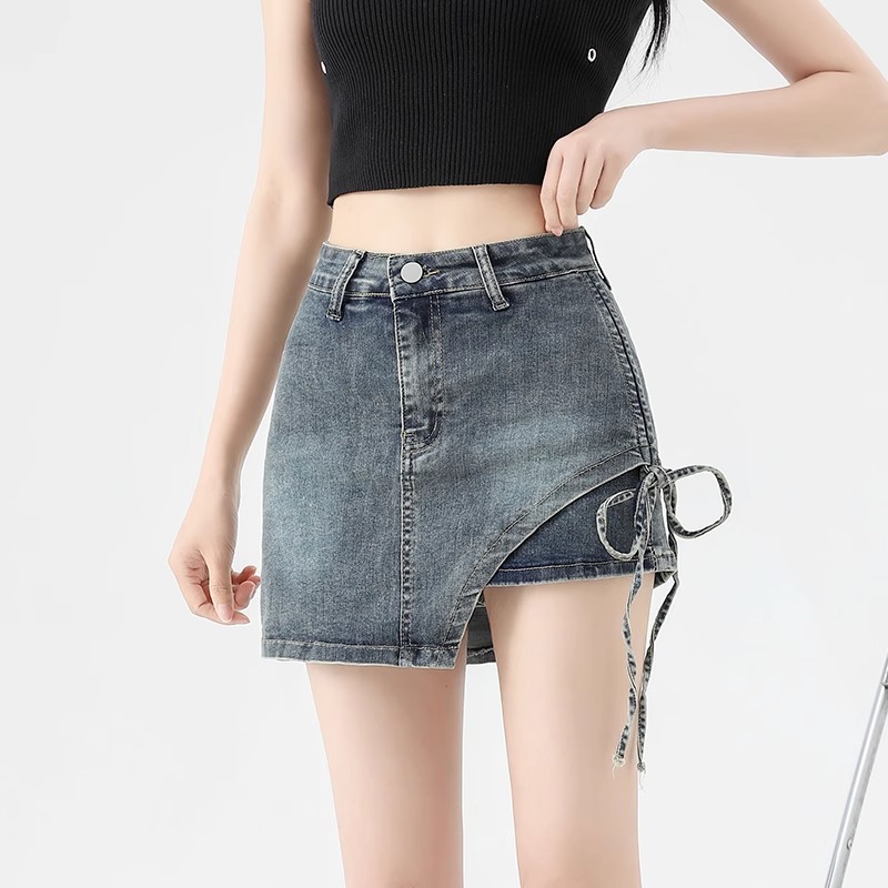 Rok Korean Style Wanita Highwaist Rok Denim Mini Fashion Biru