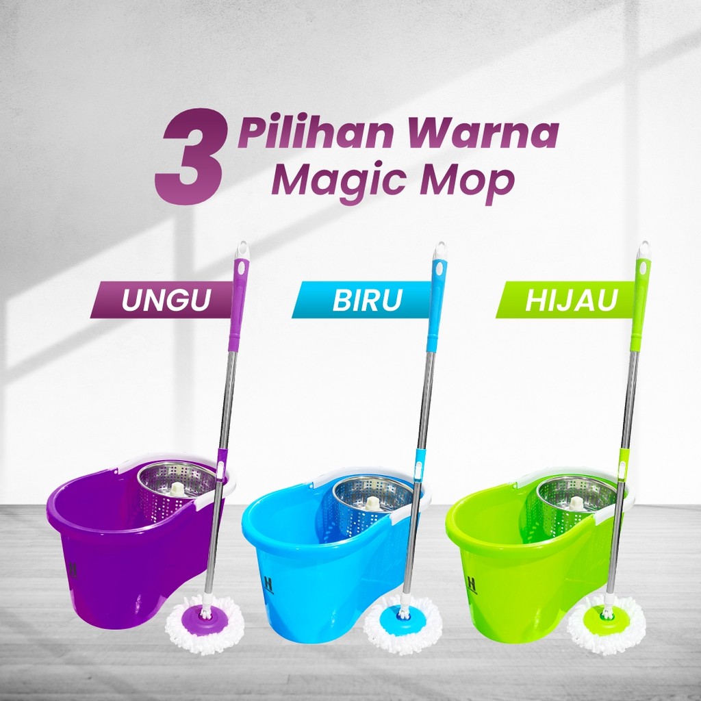 HANASTAR Spin Mop Alat Pel Lantai Pembersih Lantai Bahan Kain Microfiber Otomatis Putar Praktis Magic Mop dengan Ember Bulat Premium + BOX