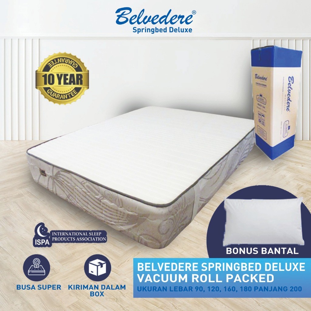 Belvedere Springbed Deluxe dalam Box Free Bantal / Bonel Spring Support / Garansi Per 10 tahun