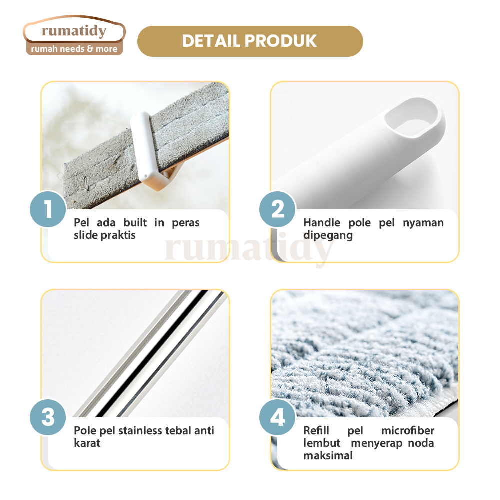RUMATIDY - Pel Lantai Tarik Peras Otomatis 360 Derajat Flat Ultra Mop Microfiber Praktis Modern