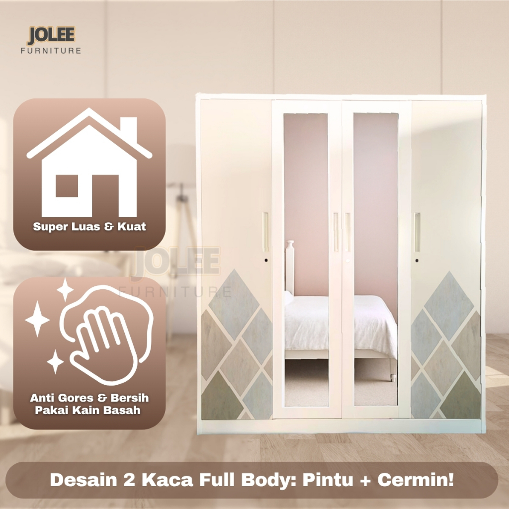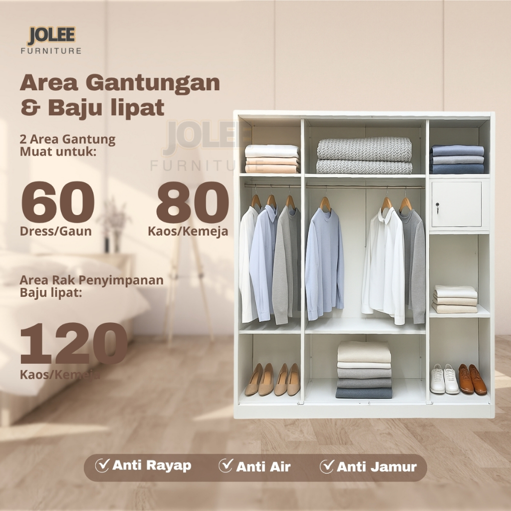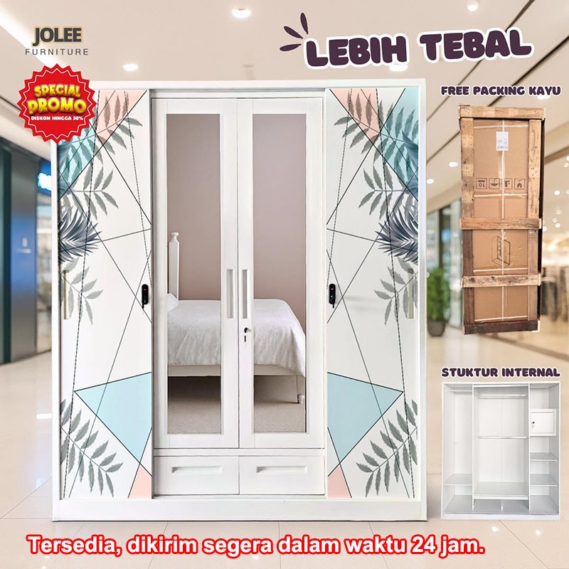 JOLEE-Lemari Pakaian Besi 4 Pintu normal 2 pilihan Jumbo157.4-160cm1 Batang Rak Baju