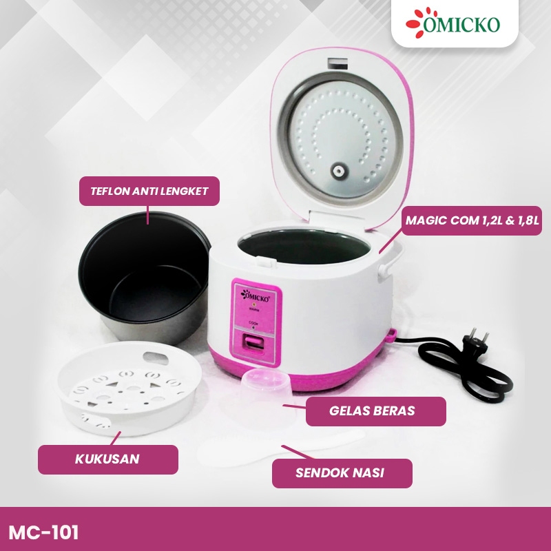 Rice Cooker Pink Omicko 1.2L &1.8L Kukusan + Bonus takaran beras– Hemat Listrik 350W – Magic Com