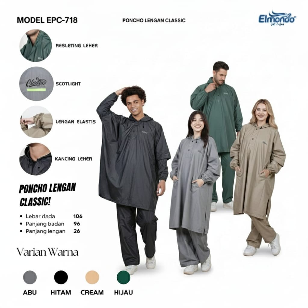 ELMONDO CLASSIC 718 Jas Hujan Ponco Lengan Celana Setelan Pria Wanita