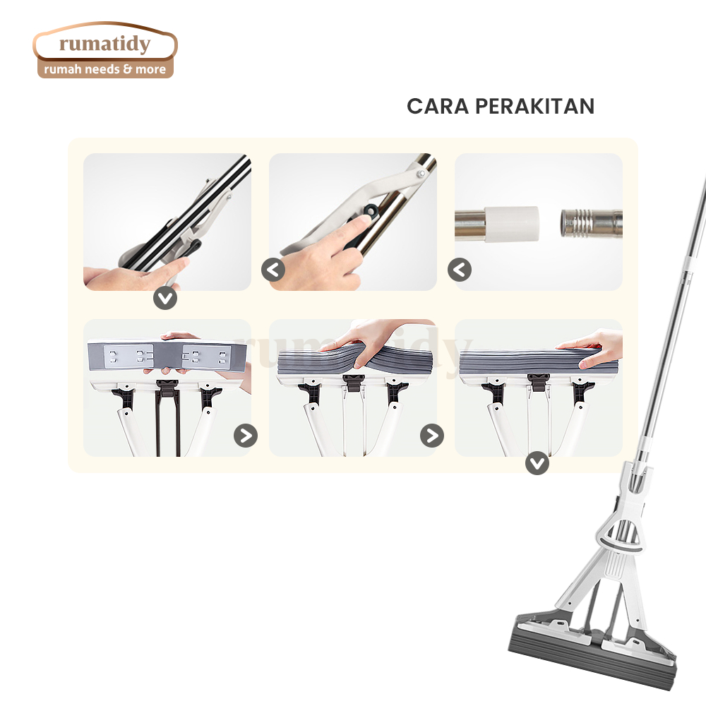RUMATIDY - Alat Pel Lantai Karet Spons Liapt Tarik Peras Otomatis Mop Set Pembersih Serbaguna