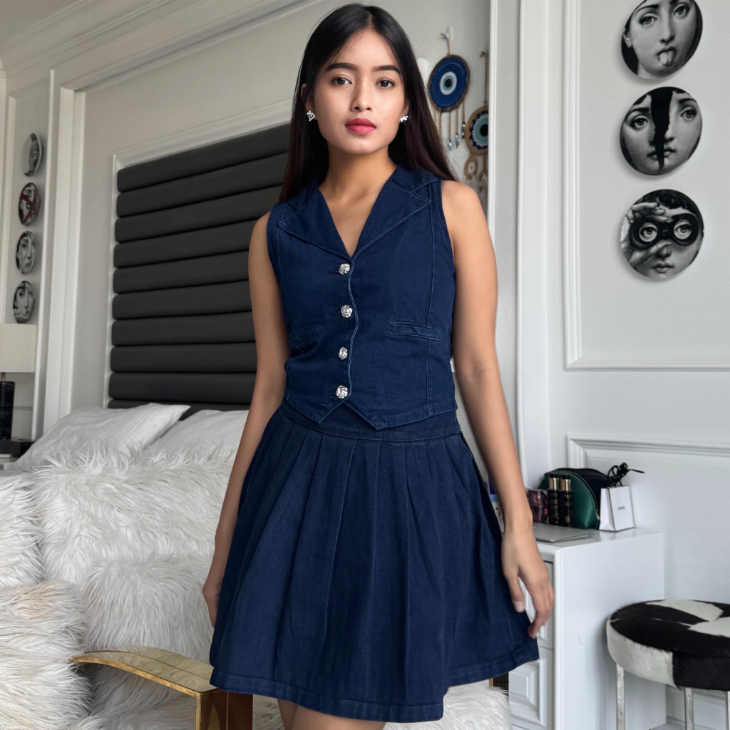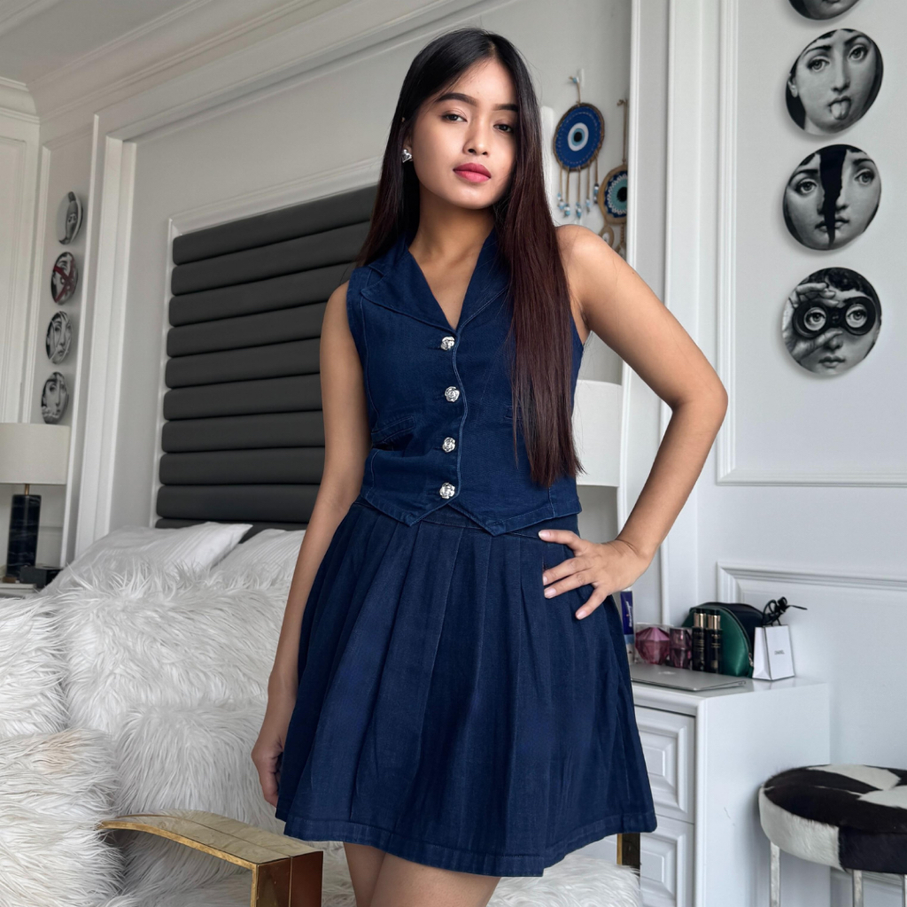 LADOUCE - Anastasia Skort Jeans Rok Celana Pendek Wanita