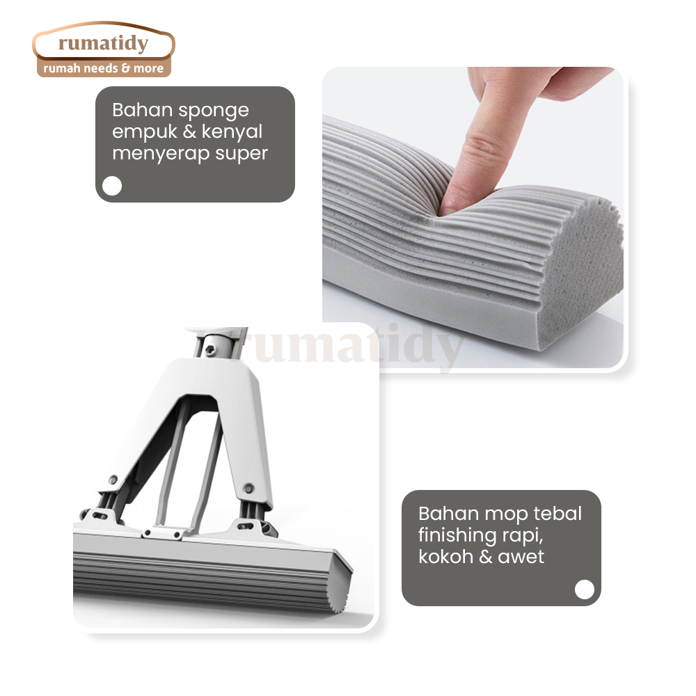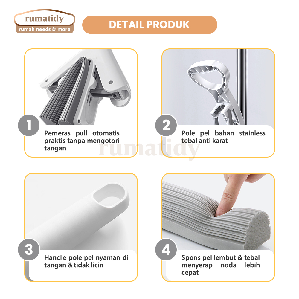 RUMATIDY - Alat Pel Lantai Karet Spons Liapt Tarik Peras Otomatis Mop Set Pembersih Serbaguna