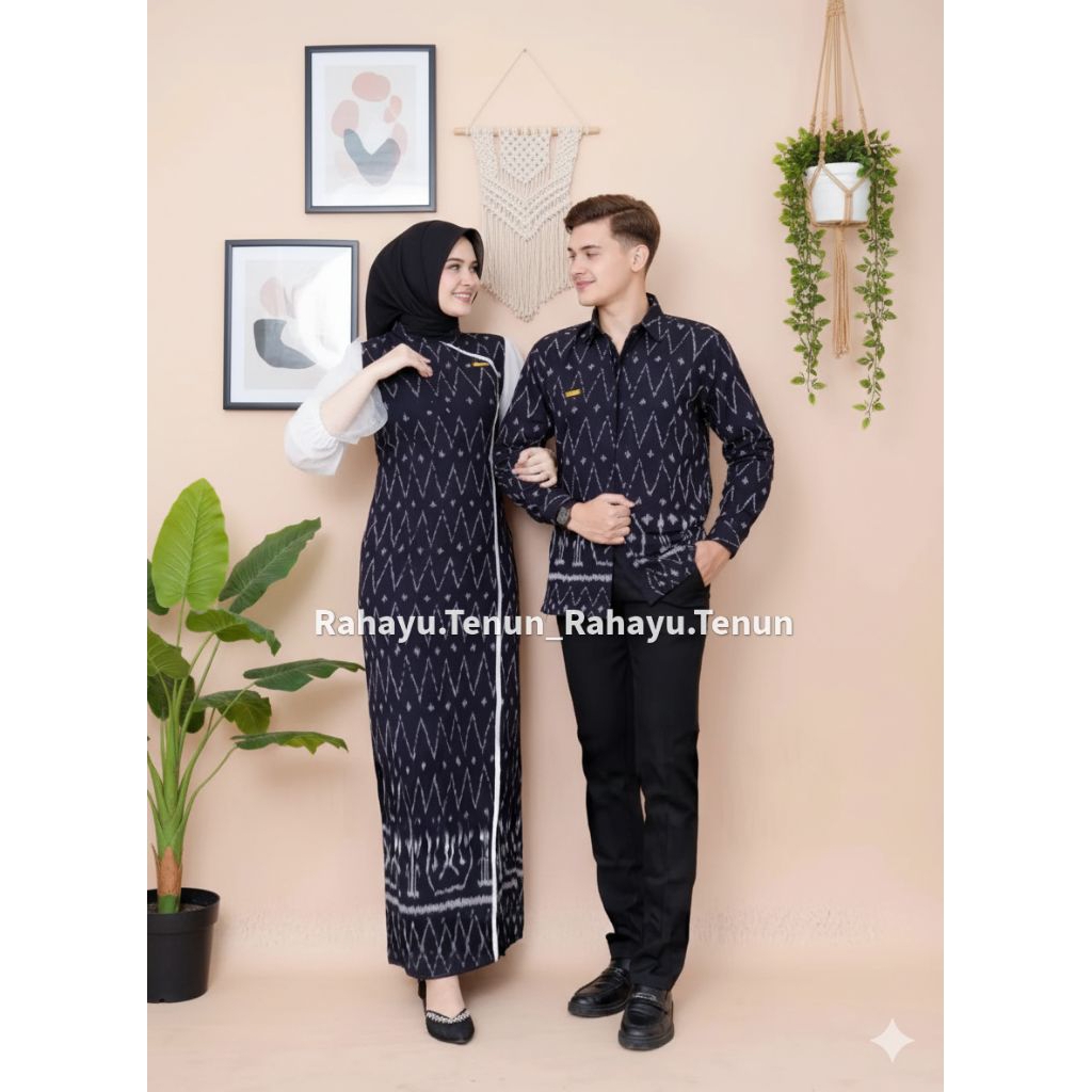 Rahayu Tenun New Series Jenar Dress Mocca Hitam Set Couple baju pasangan pria wanita kondangan prewedding natal imlek lebaran pakaian perempuan