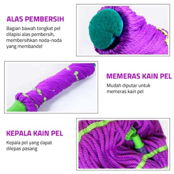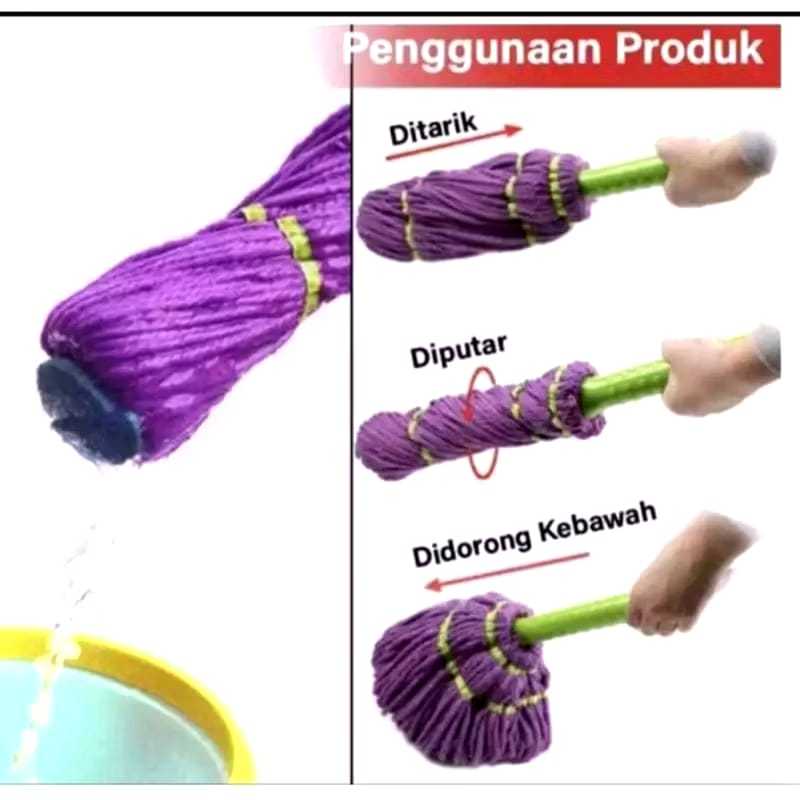 (T) Alat Pel Lantai Putar Otomatis - Magic Twist Mop ( pel Ungu)
