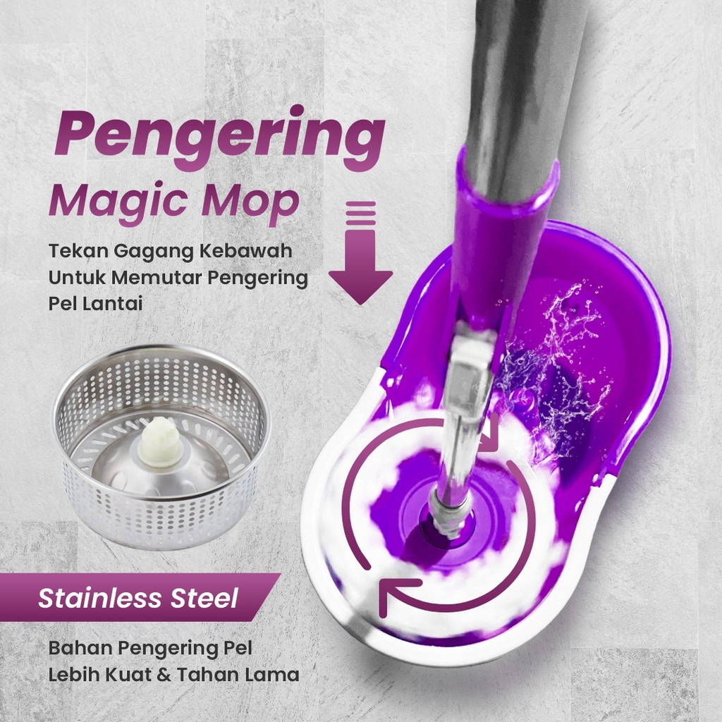 HANASTAR Spin Mop Alat Pel Lantai Pembersih Lantai Bahan Kain Microfiber Otomatis Putar Praktis Magic Mop dengan Ember Bulat Premium + BOX