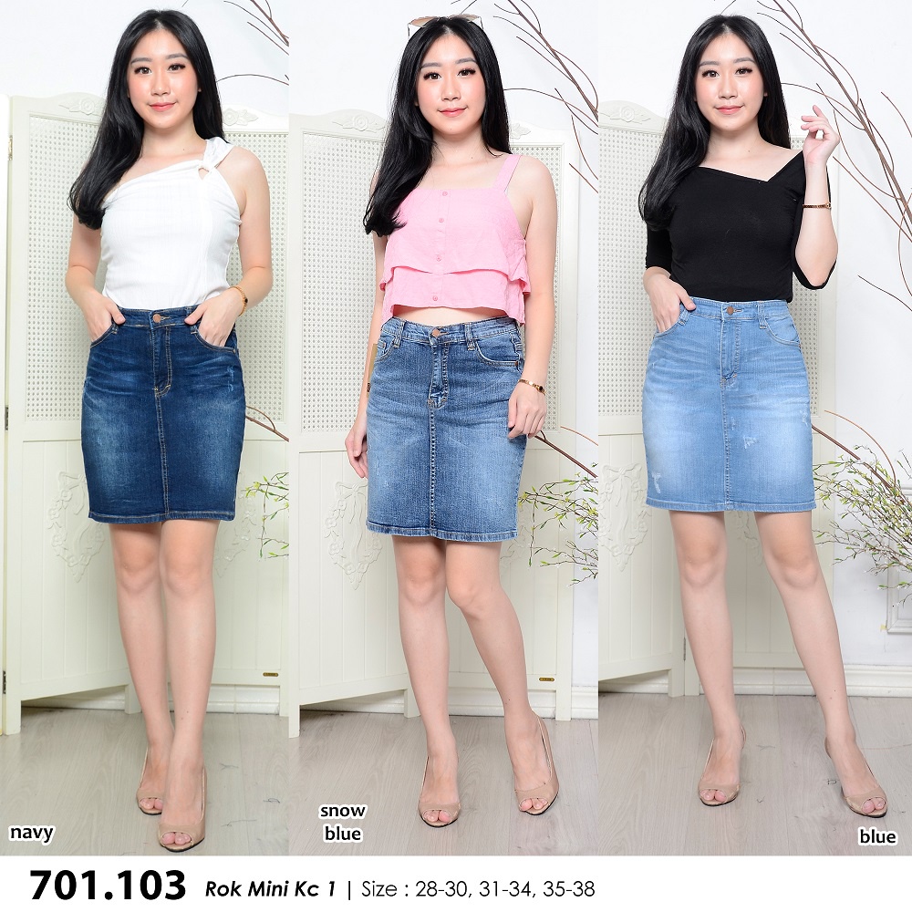 BANDIDAS - Rok Jeans Pendek Wanita Rok Mini Motif Cakar 3 Warna