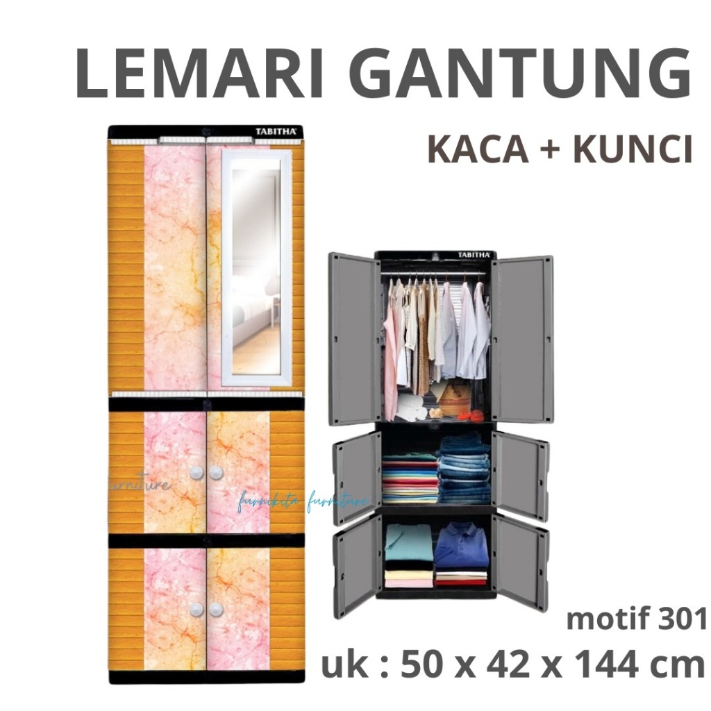 LEMARI PAKAIAN PLASTIK TABITHA DENGAN CERMIN KARAKTER FULL KUNCI