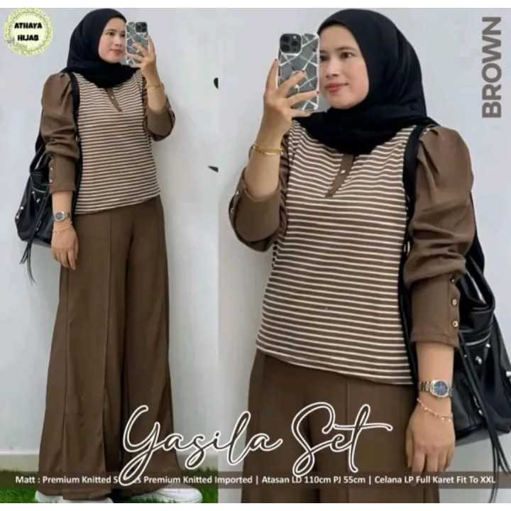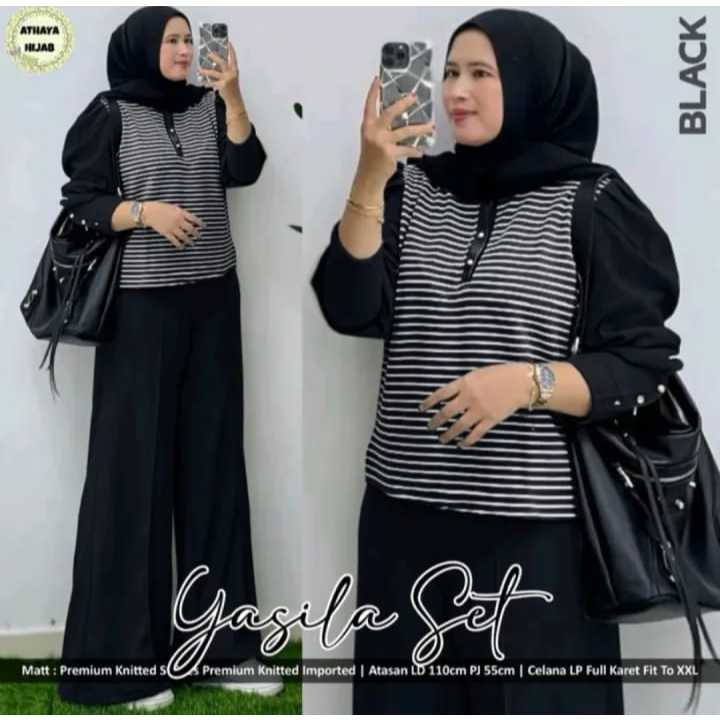 BIG SIZE LD 110 120 130 CM XL XXL XXXL YASILA SET BAJU SETELAN WANITA TERBARU BUSUI BAHAN KNIT IMPORT ONESET KOMBINASI ATASAN SALUR CELANA POLOS