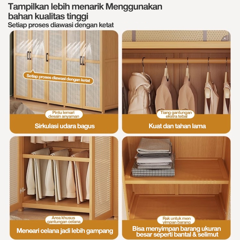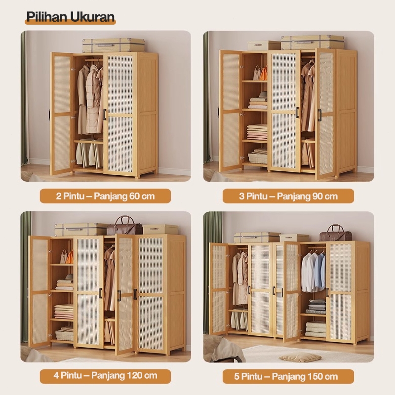 Laccohug Lemari Bambu Lemari Pakaian Kapasitas Besar Tersedia dalam berbagai ukuran