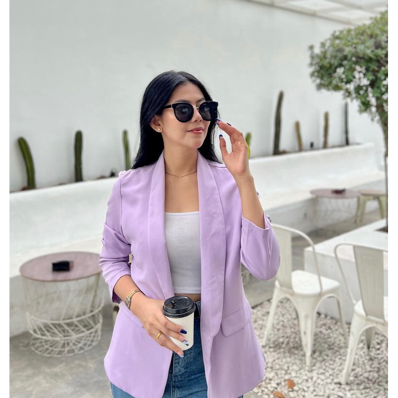 Chloebeautyshop - Blazer Blanik Wanita Premium Original Kerah Lurus Lengan Panjang