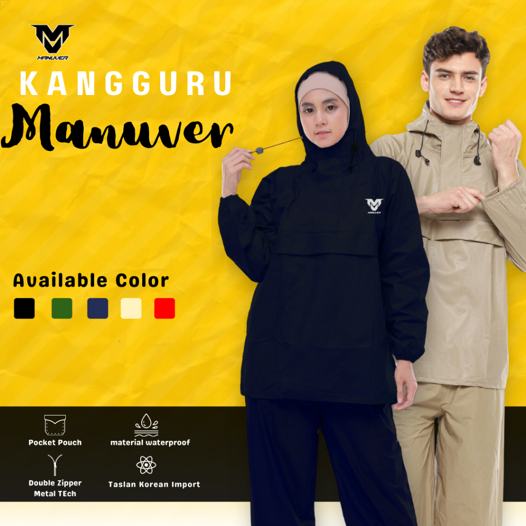 Jas Hujan Kangaroo Raincoat Mantel Saku Kangguru Anti Bocor Hujan Deras Lebat Saku Kanguru Pria Wanita D3W4SA Anti Air Bahan Waterproof Taslan PVC