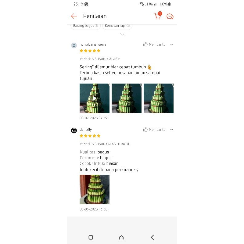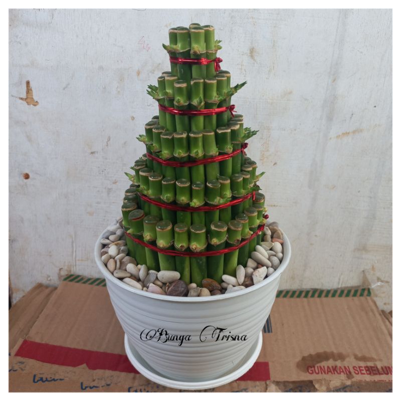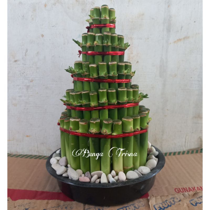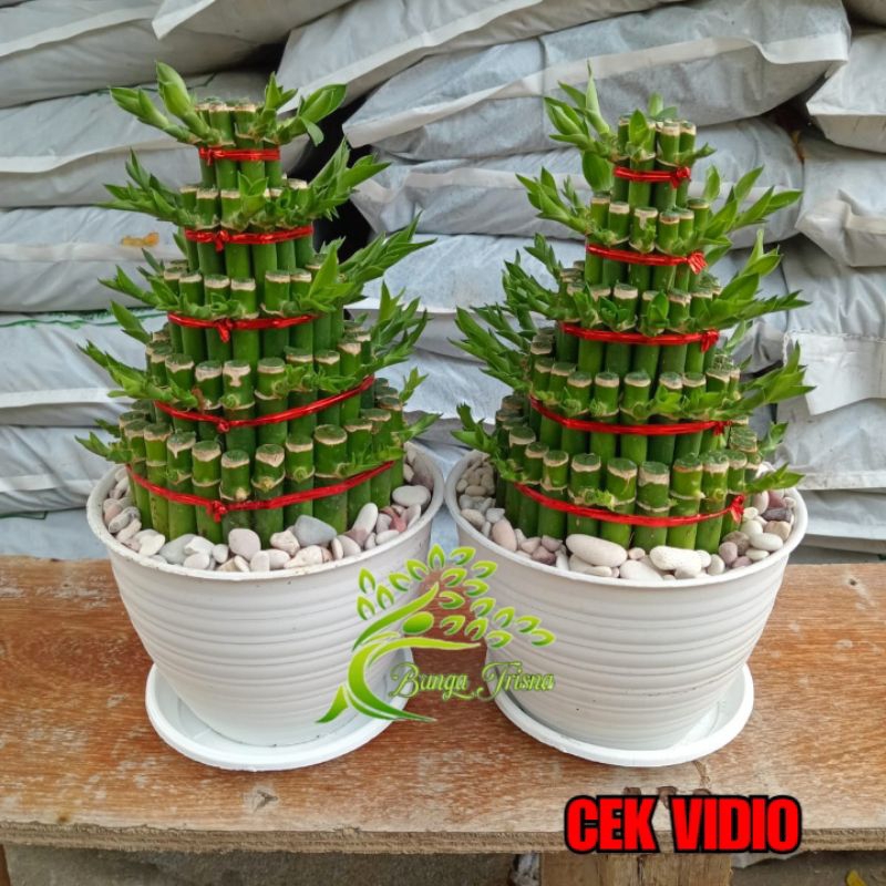 TANAMAN HIAS BAMBU HOKI 5 SUSUN + POT + BATU PANCAWARNA / BAMBU AIR / BAMBU LUCKY / BAMBU CINA SRI REJEKI
