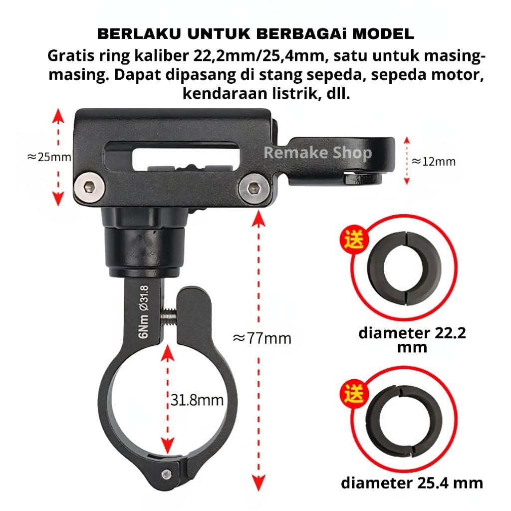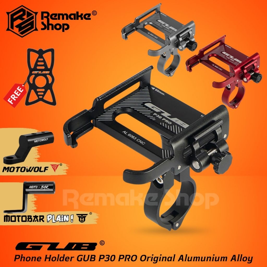 GUB P30 PRO Quick Release Original Holder HP Motor Alumunium Alloy Full Besi Dudukan Breket HP Tempat Handphone di Seped