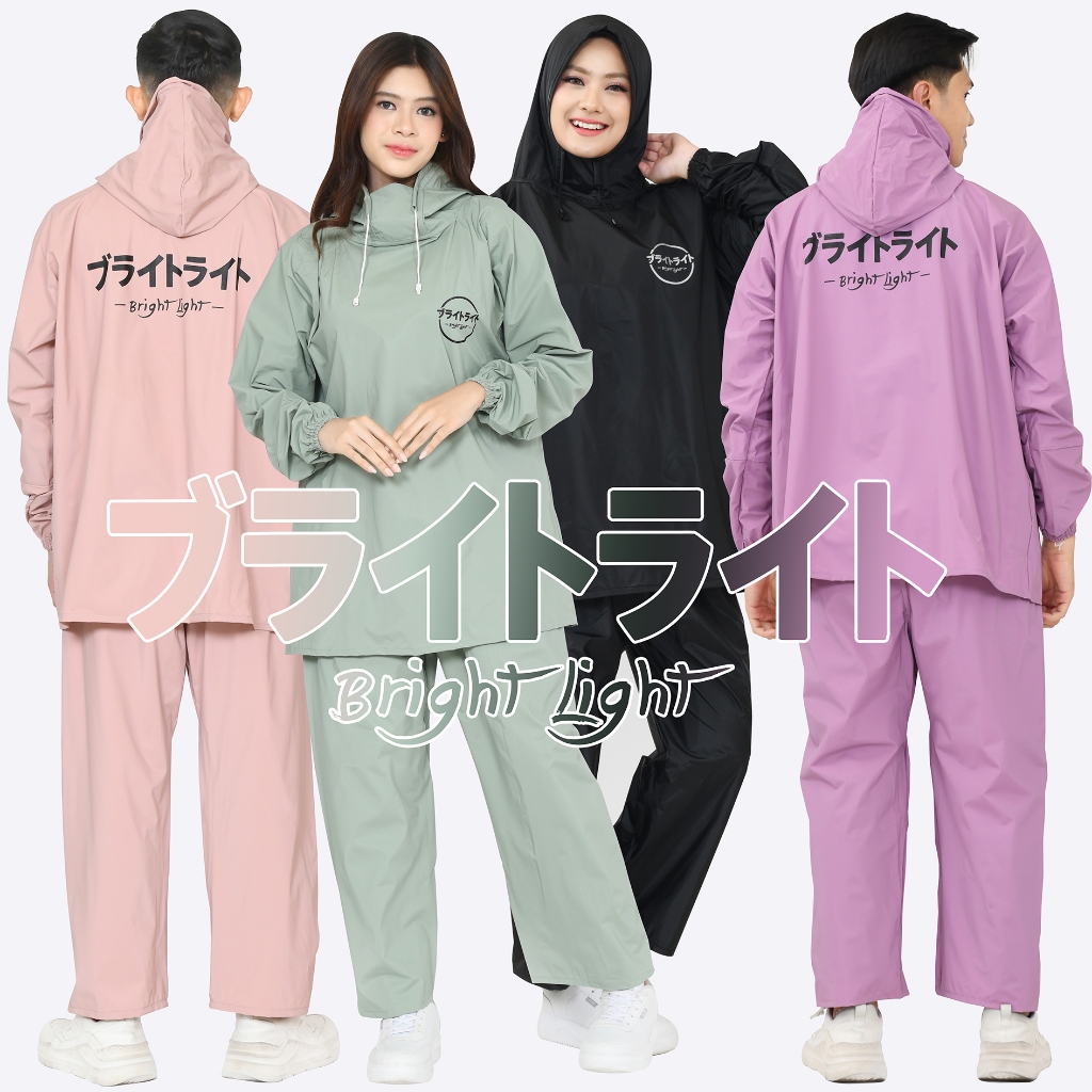 Jas Hujan Hoodie BRIGHT LIGHT | Model Tanpa Zipper | D3W4SA Pria Wanita | Bahan Tebal PVC 0.25