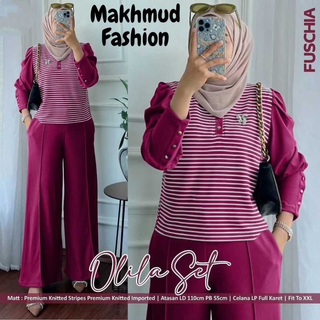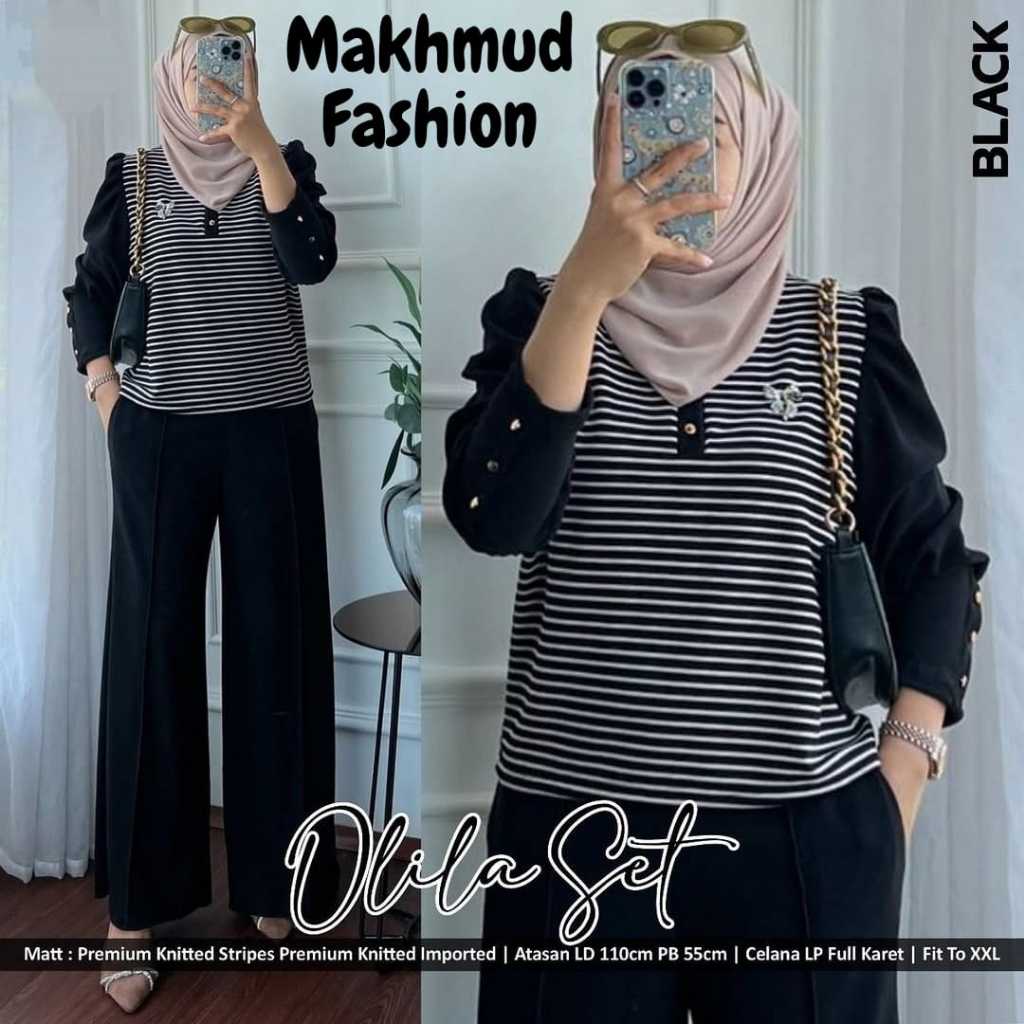 PROMO LD 110 120 130 CM XL XXL XXXL OLILA Set Jumbo Baju Setelan Wanita Busui Bahan Knit Import Premium Set Kombinasi Atasan Salur Celana Polos