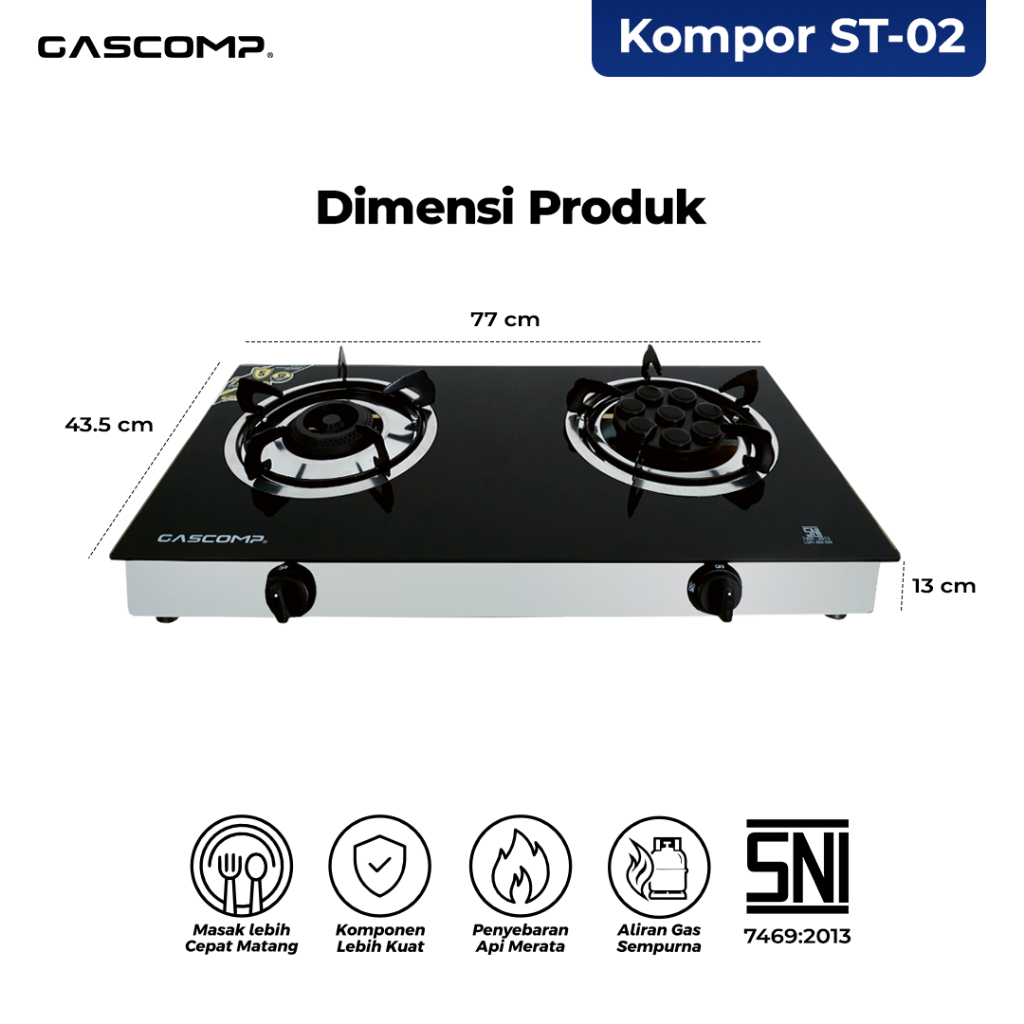 GASCOMP Kompor Gas Meja Kaca Classic + 8 Jet | Kompor Gas 2 Tungku Elegan | Api Besar Hemat Gas | Kompor Dapur Modern