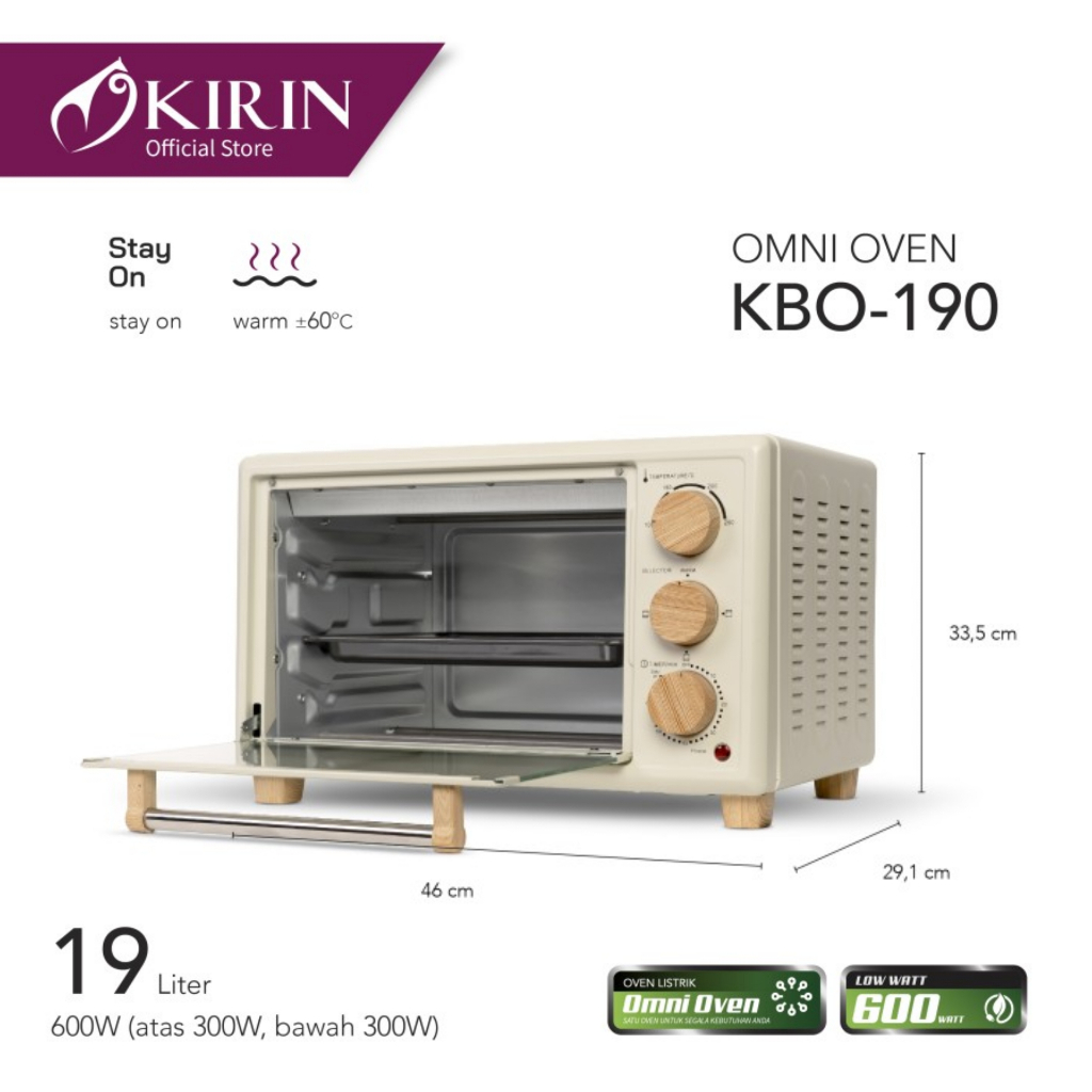 Oven Listrik Kirin KBO 190 LW 300 Watt Oven Kirin KBO 19LW Oven Low Watt Toaster Oven KBO190 WH