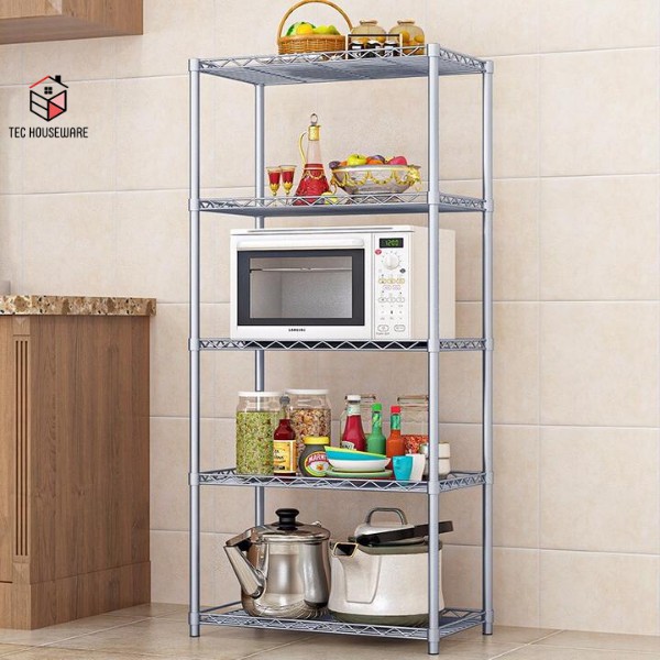 Rak Penyimpanan Serbaguna • TEC • Rak penyimpanan 5 Tingkat Abu-Abu & Hitam Rak Dapur Ruang Tamu Kamar Mandi