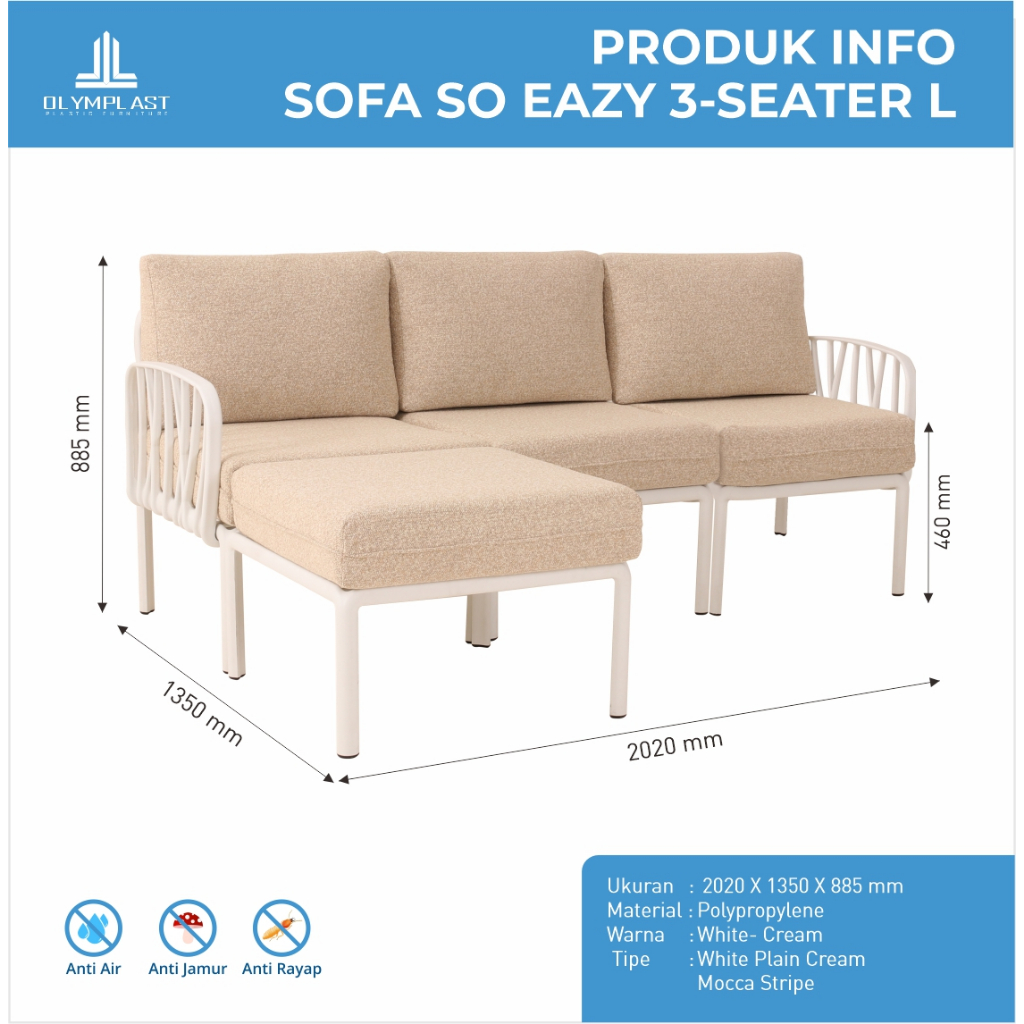 Olymplast Sofa SoEazy ( 3 Seater L ) / Kursi Sofa Lipat / Kursi Ruang Tamu / Sofa Tamu / Sofa Foldable
