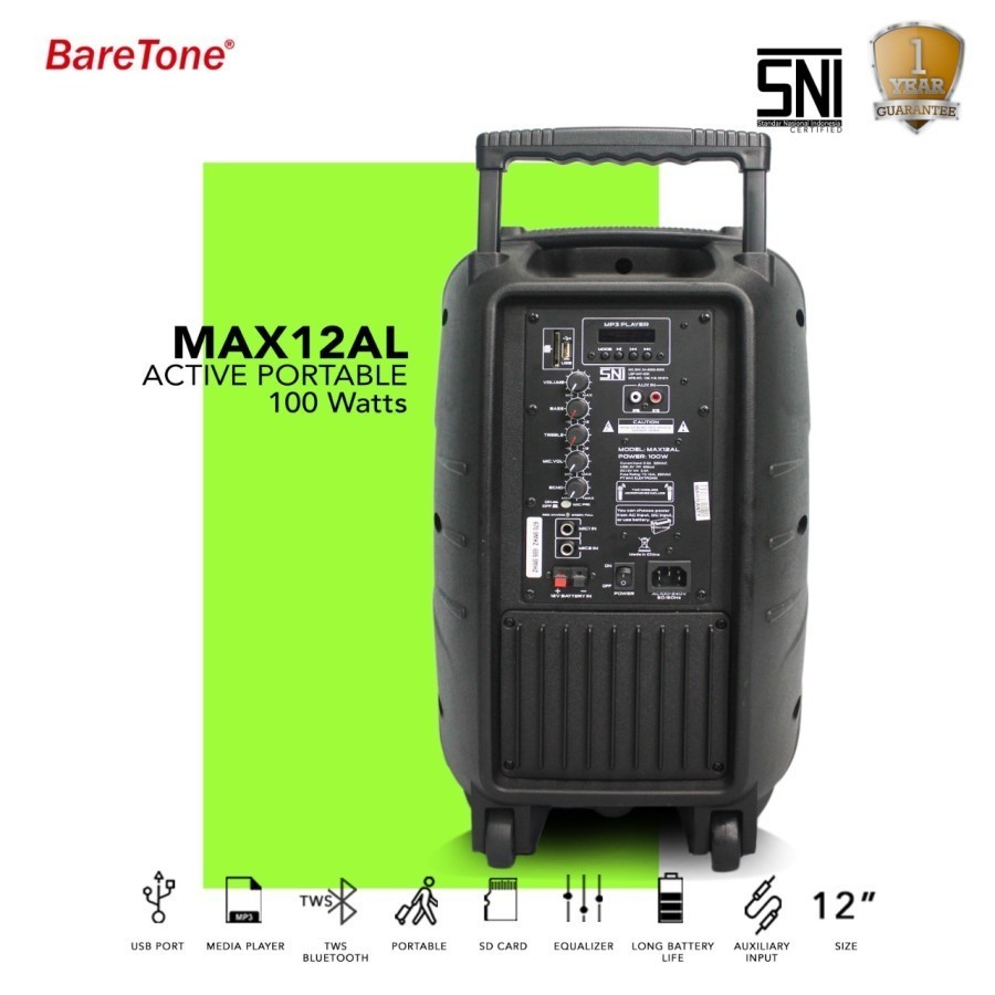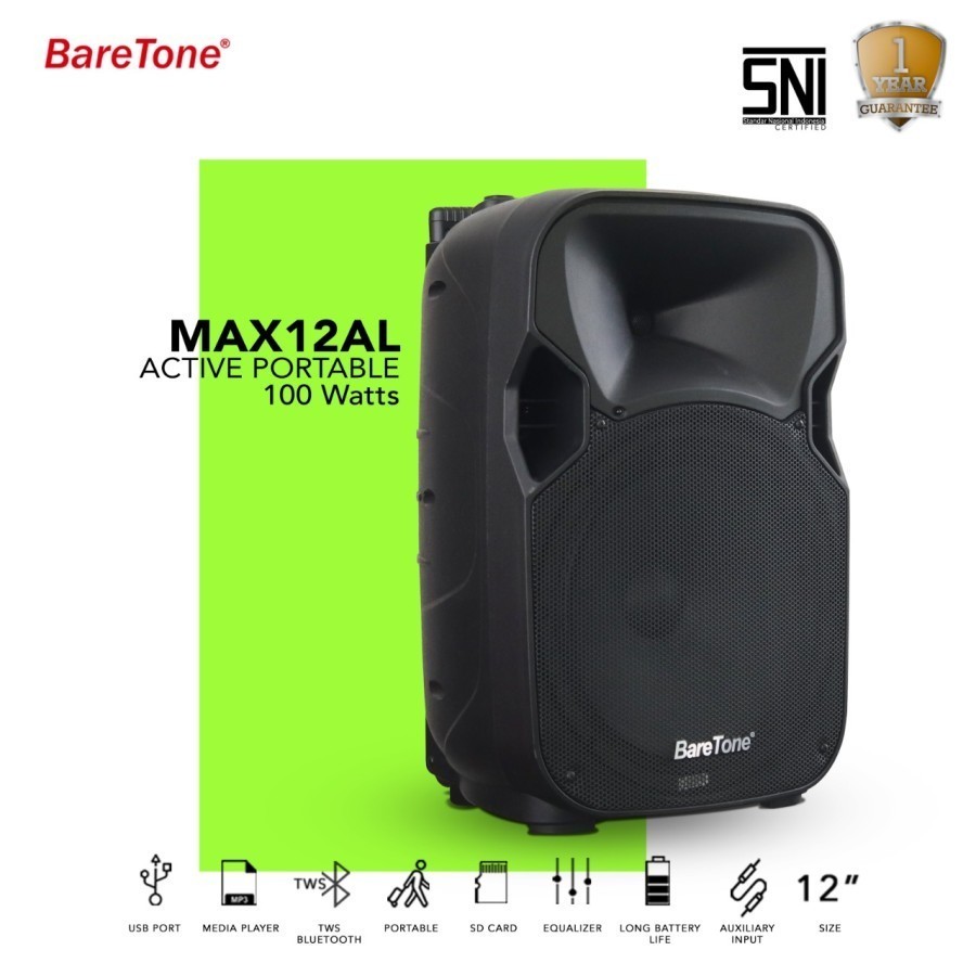 Speaker Aktif Portable BARETONE MAX12AL MAX 12 AL MAX 12AL MAX12 AL ORIGINAL 12 INCH + 2 MIC WIRELESS