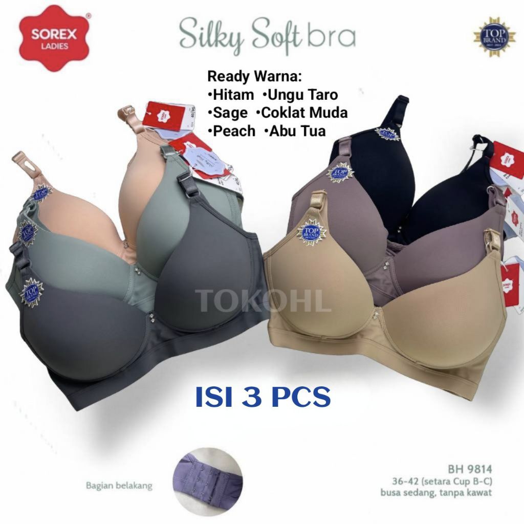 Isi 3 PCS BH Sorex 9814 Silky Soft Busa Tanpa Kawat Bra Setara Cup B-C Kait 3